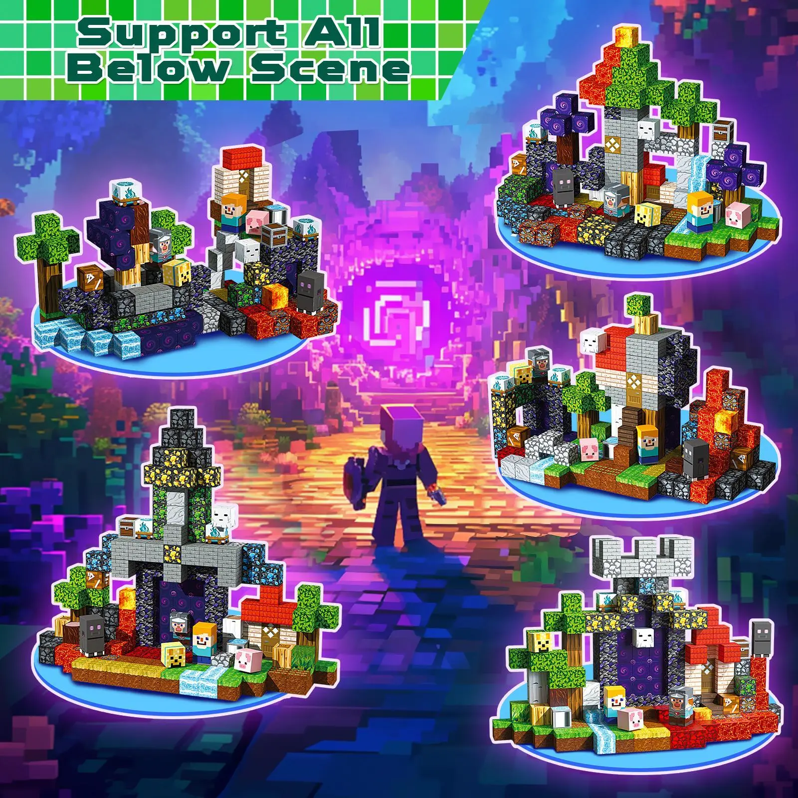 ·【Interactive & Entertaining】 The magnetic building blocks set includes an instruction manual paper and 14 different patterns blocks. These magnetic blocks for kids can build structures, and scenes with these magnetic toys. Each cube connects easily for unlimited stacking and construction variations.