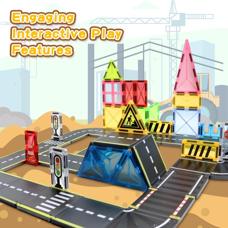 Magnetic Building Blocks Road Assembly Toy Set, Stem Magnetic Blocks, Learning Sensory Children Birthday Toy, Creative Construction Toys, Magnetic Building Tiles