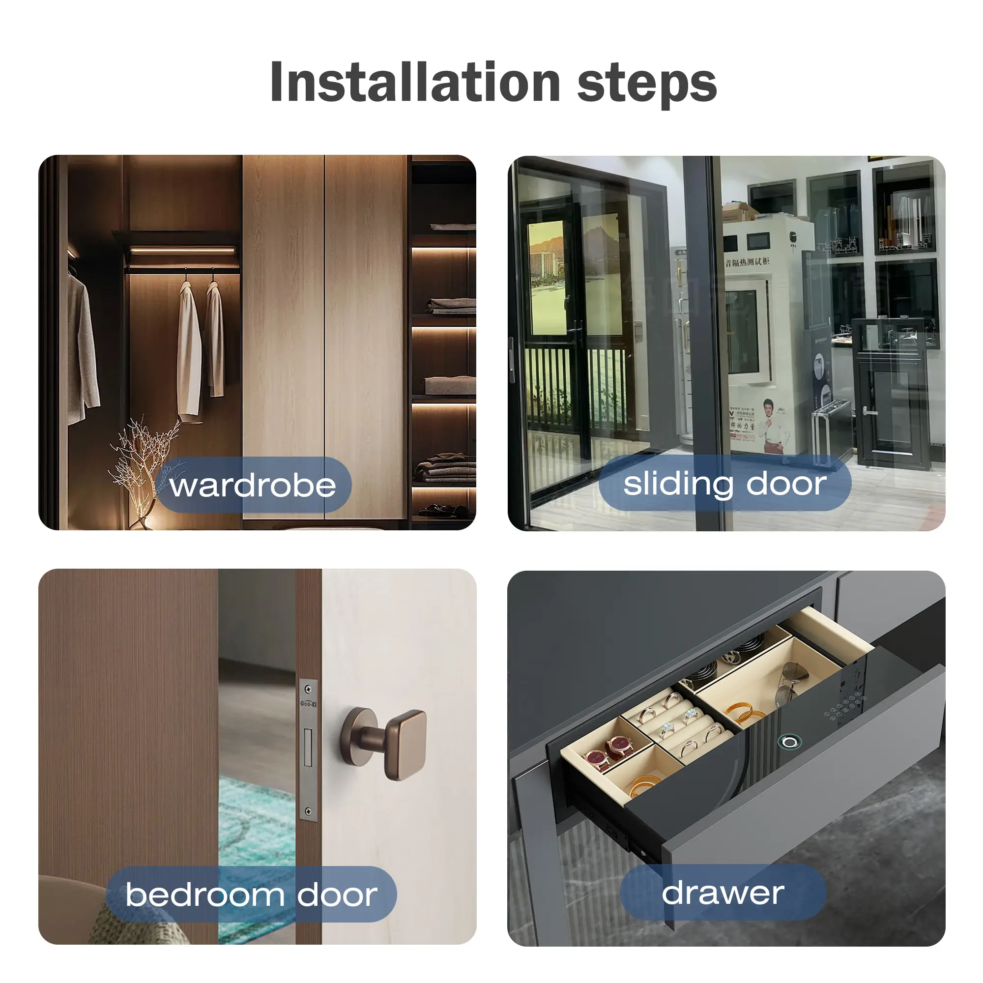 Easily Use - Just wipe it and door clean with a cloth, and mark the position for stick, then tear the strong glue to stick on the back of catch and stick on the door to finish the installation