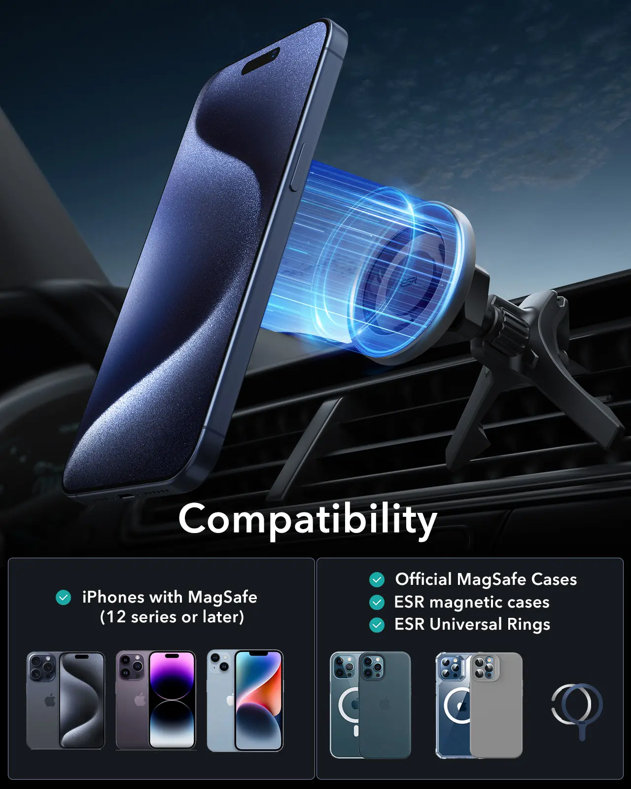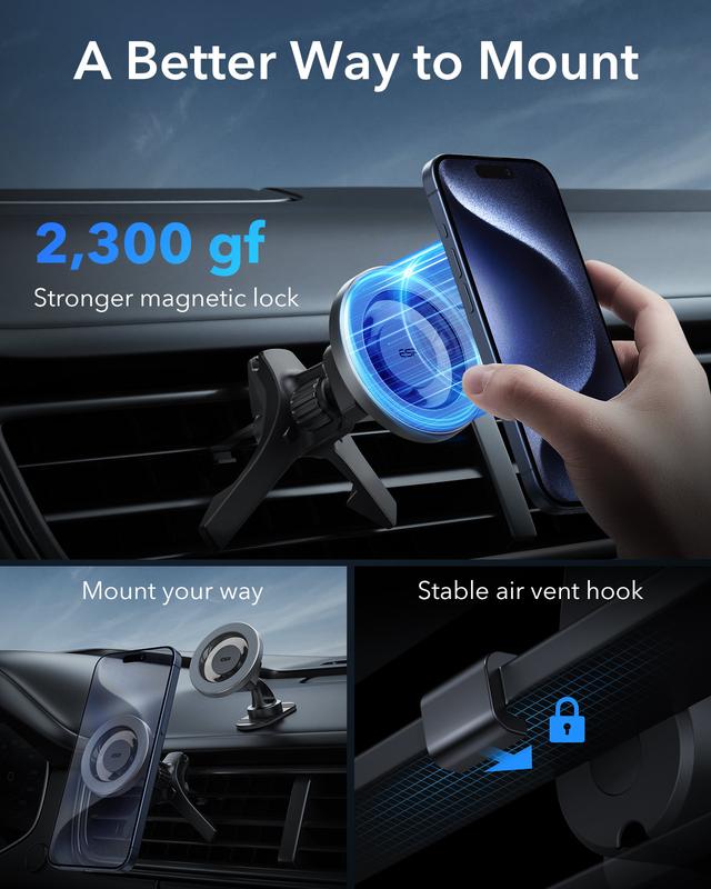 ·Ultra-Strong Magnets: high-grade N52H magnets with a holding force of 2,300 g keep your phone securely in place; combine with ESR HaloLock case for the strongest magnetic lock; Wireless Charging Not Supported