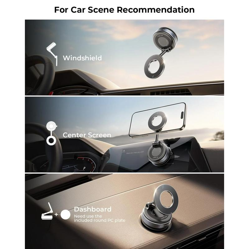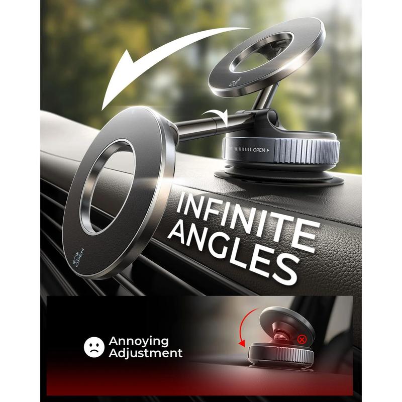 Magnetic Car Phone Holder 360° Rotating MagSafe Mount Ultra Suction Cup Stand for iPhone Android Easy Installation Secure Hold