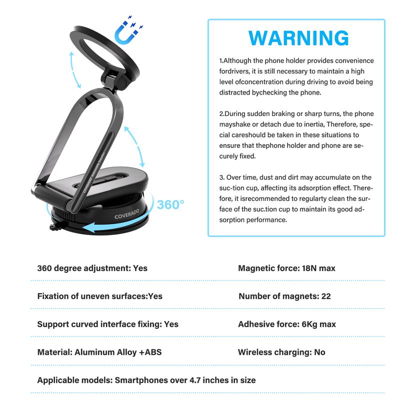 ·One Hand to Adjust: Equipped with a unique gear structure, this phone holder offers a complete 360° rotation, making it easy to adjust your viewing angle and put/take your phone with one hand. Whether you need vertical navigation or horizontal entertainment, this versatile magnetic phone mount lets you effortlessly find the best perspective for your needs, ensuring a safe and enjoyable hassle-free driving experience