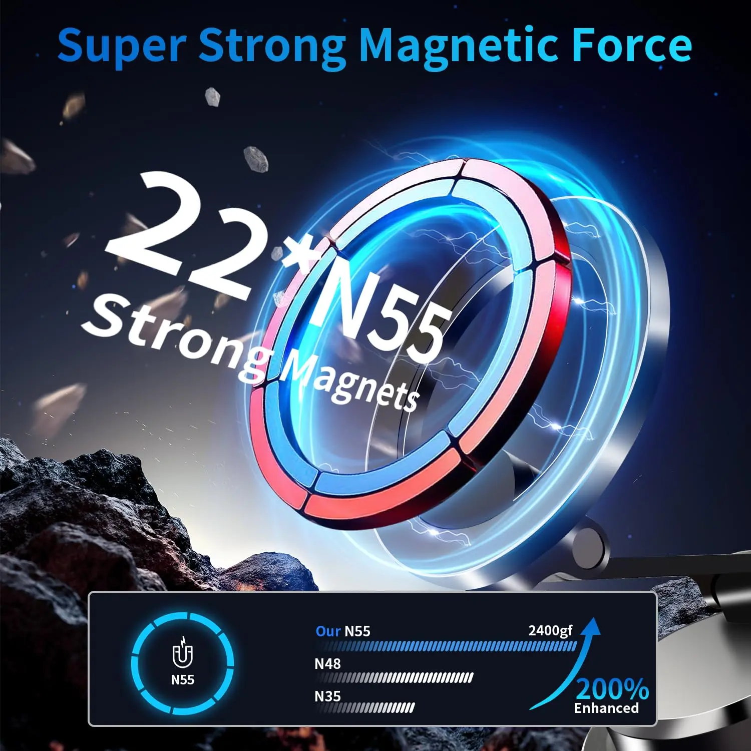 Built-in high-power magnetic adsorption, the phone/tablet is firmly attached once attached, and it will not fall off even when driving bumps or running vibrations (supports MagSafe and models with magnetic sheet).
