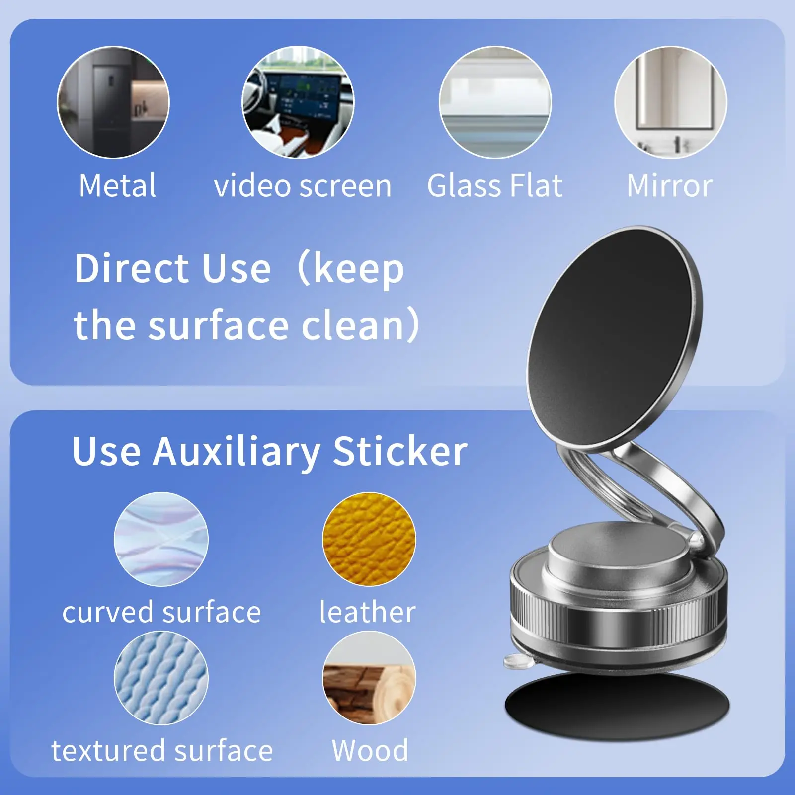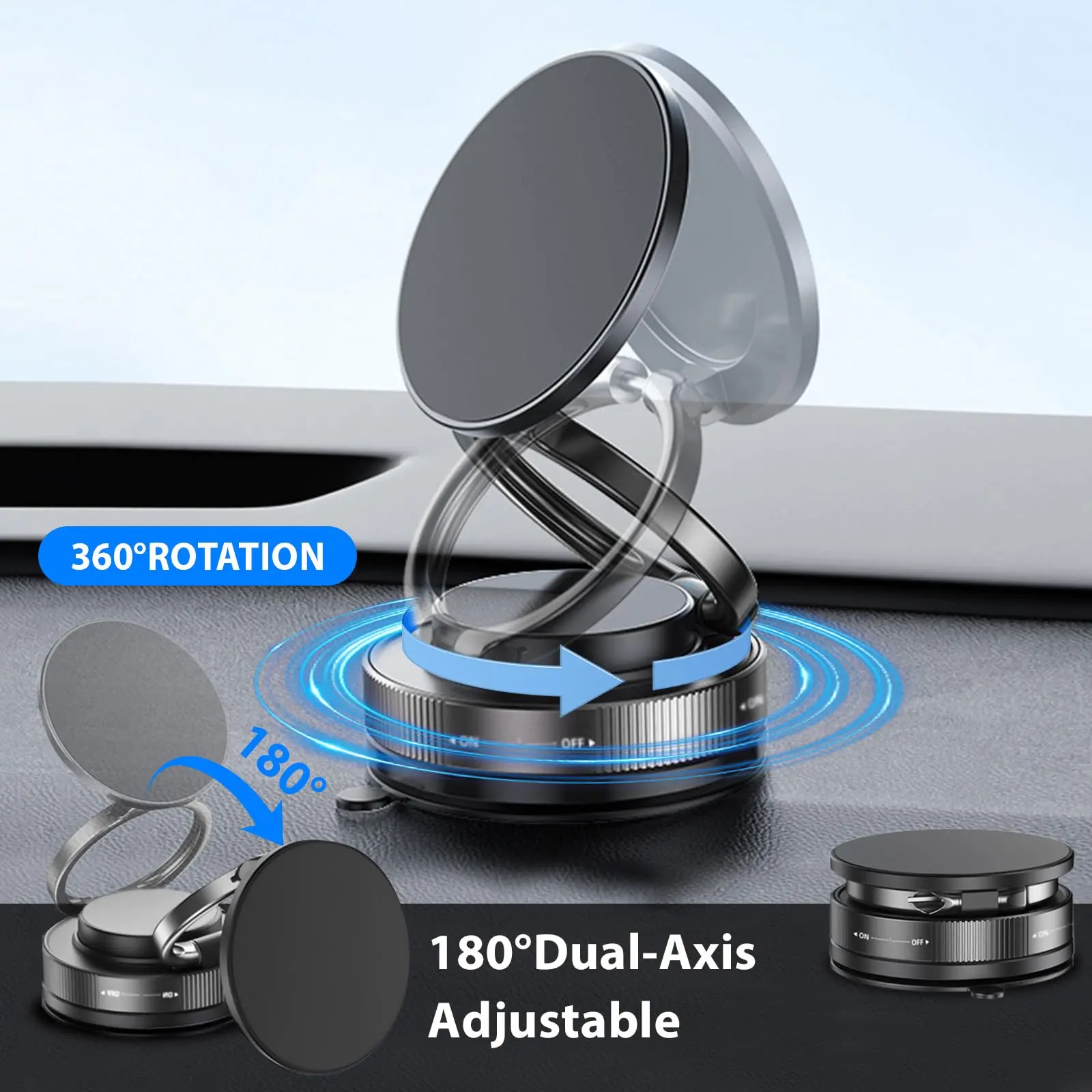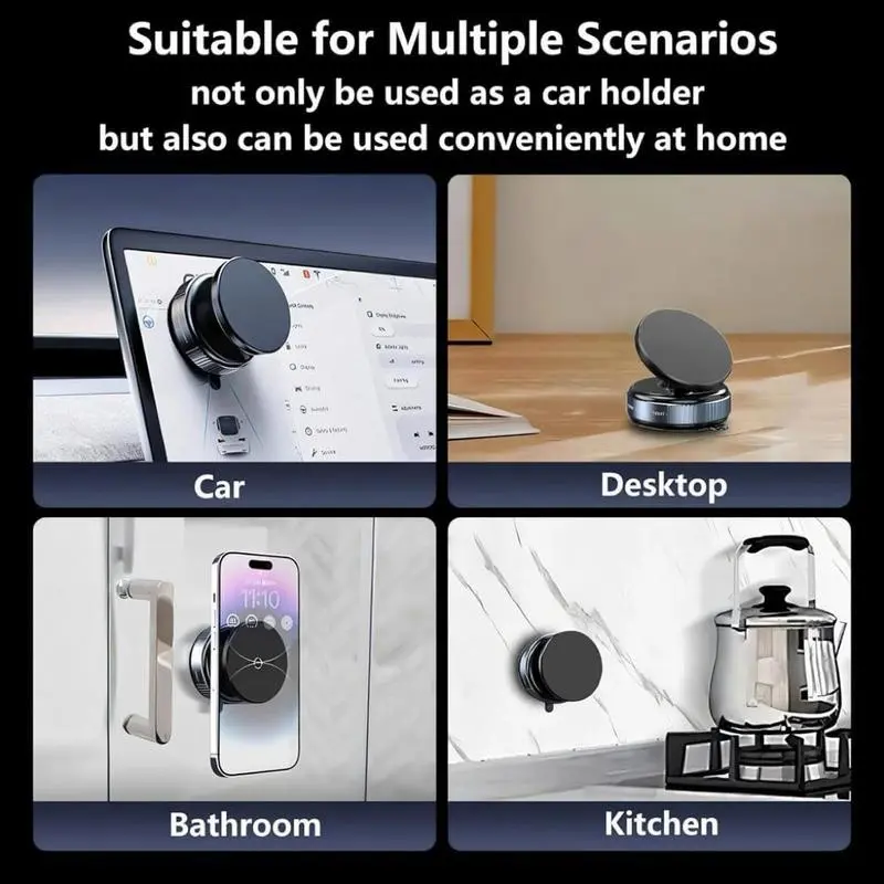 Ever fumble with your phone while driving or working out? This foldable, retractable magnetic phone stand is your new best friend! Perfect for your car, gym, shower, or any smooth surface, it keeps your phone secure and hands-free. Featuring advanced vacuum suction, it sticks firmly to dashboards, windshields, glass, metal, and tiles without causing damage. The 360° adjustable mount lets you find the perfect angle for navigation, calls, or videos, making every drive or workout safer and more enjoyable. Compatible with iPhone 16 Pro Max, 15, and many other models thanks to the included metal ring, it supports phones up to 8 lbs with powerful N52 magnets. The package includes a smooth adhesive pad for tricky surfaces and an alcohol wipe to keep suction strong. If your surface isn’t perfectly smooth, just stick on the adhesive pad first, then attach the suction cup for extra grip. Lightweight and compact, this phone holder fits neatly on your dashboard without clutter. Upgrade your phone experience wherever you are—grab yours now and enjoy hands-free convenience with style and reliability!