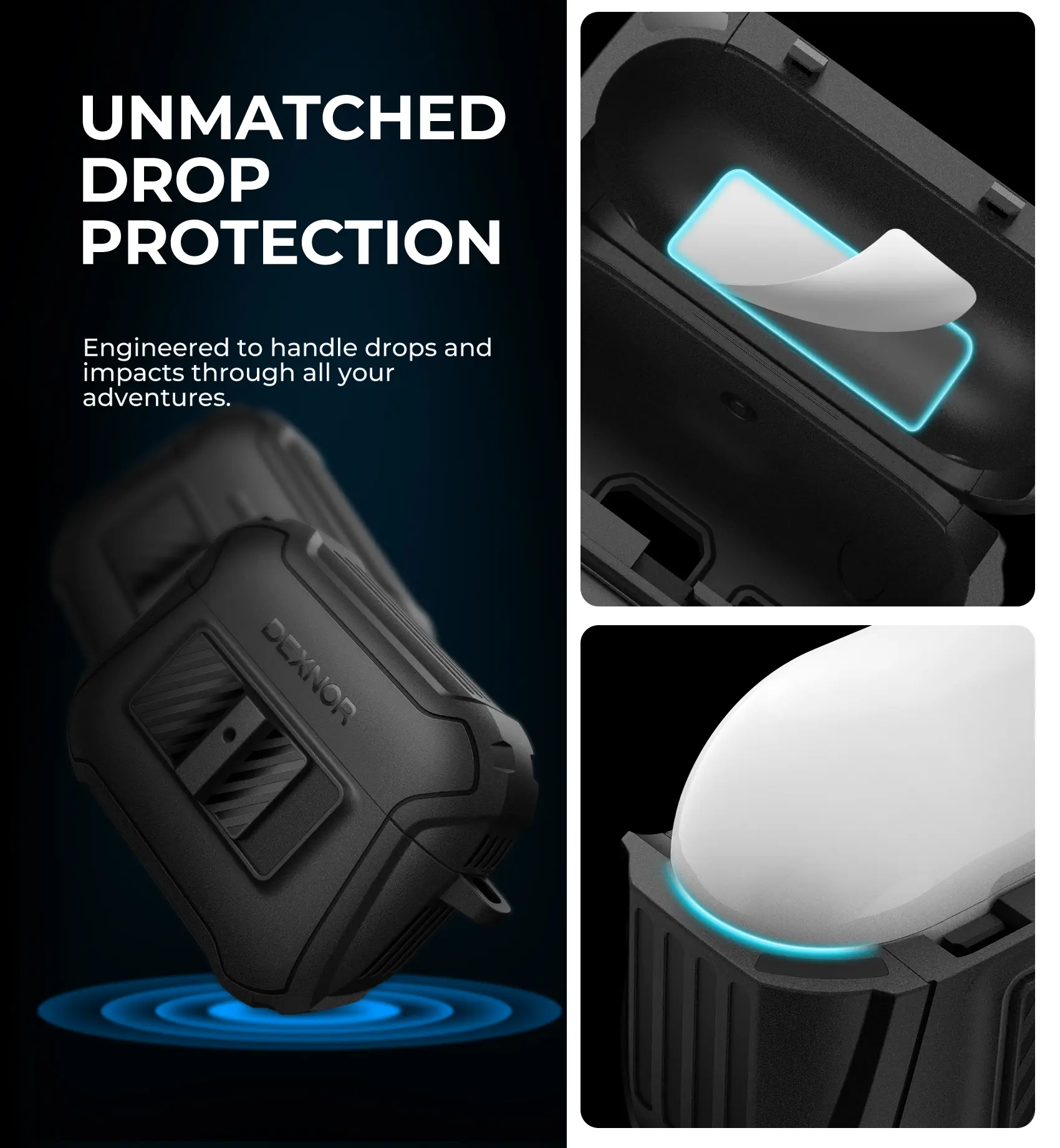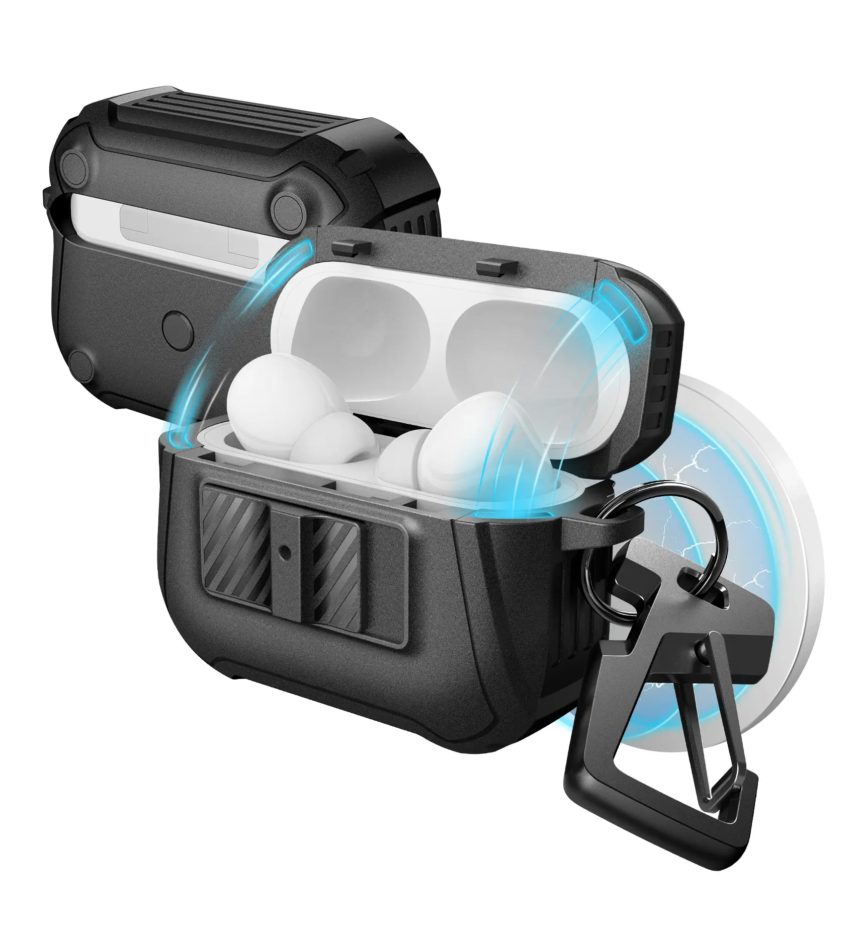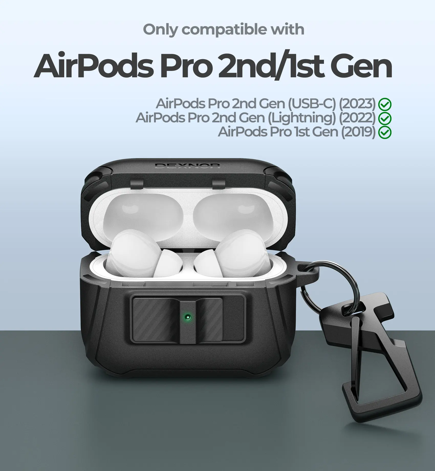 Ever worry about dropping your AirPods Pro during your daily adventures? The Dexnor Magnetic Case has you covered with rugged, drop-proof protection designed for both 1st and 2nd generation AirPods Pro. Its dual-layer shock absorption keeps your earbuds safe from bumps and falls, while the smart locking mechanism ensures the case stays firmly closed. Thanks to built-in magnets, you can wirelessly charge your AirPods using MagSafe without ever removing the case. Plus, the sturdy carabiner lets you clip your AirPods securely to your bag, belt, or keys—perfect for on-the-go lifestyles. The case’s precise cutouts mean full access to buttons and ports without hassle. Inside the box, you’ll find the magnetic protective case with the carabiner included. Ready for every adventure and built tough, this case keeps your AirPods safe and stylish. Grab yours today and enjoy every beat wherever life takes you!
