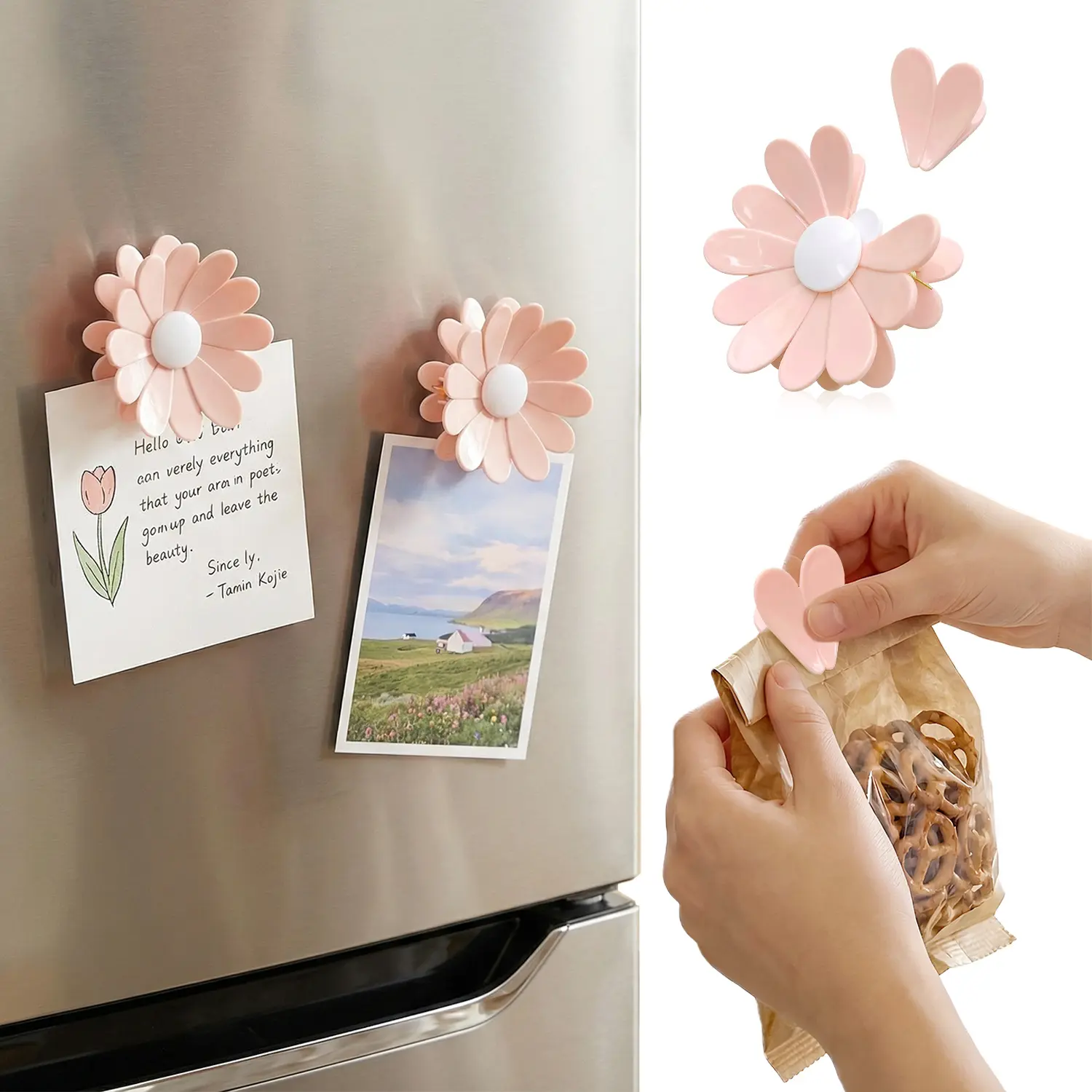 5. 1 Count Magnetic Chip Clips for Refrigerator, 2-in-1 Food Bag Clips & Fridge Magnets,Daisy Shaped Decorative Refrigerator Magnets Clip for Kitchen Food Storage and Fridge Decor