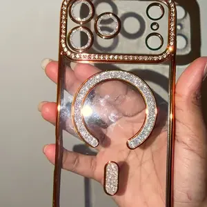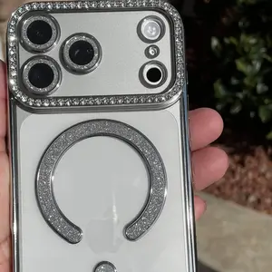 OREKROY【Free.ship】Magnetic Clear Glitter Case for iPhone 17 Pro Max 17Air 17Pro 17, Compatible with MagSafe – Sparkly Bling Diamond Rhinestone Design with Camera Lens Protector, Fits iPhone 13 14 15 16 Pro Max