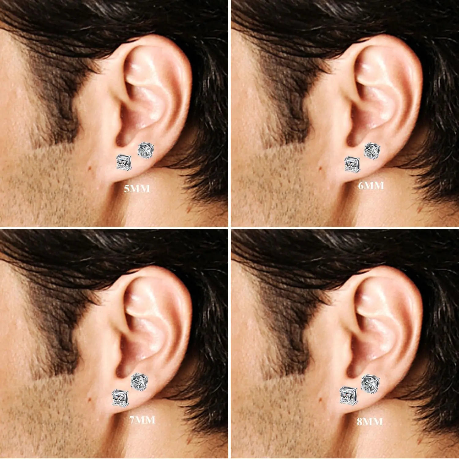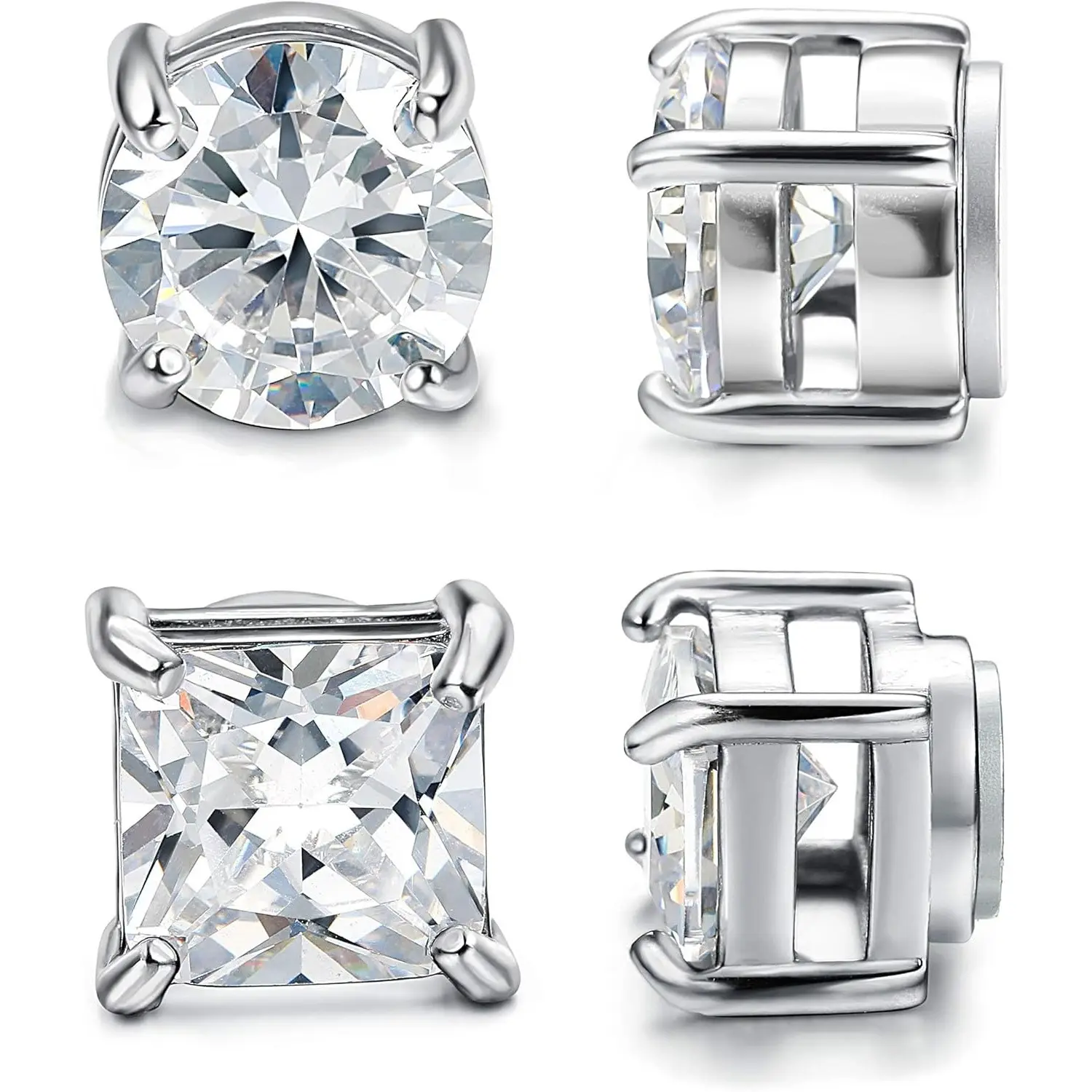 Non Pierced Magnetic Earrings: 2 pairs 5mm earrings come in a set, includes silver round CZ stud earrings and square cubic zirconia earrings studs. Stylish and elegant choice for both men and women, meet your different matching needs, add more attraction to your style