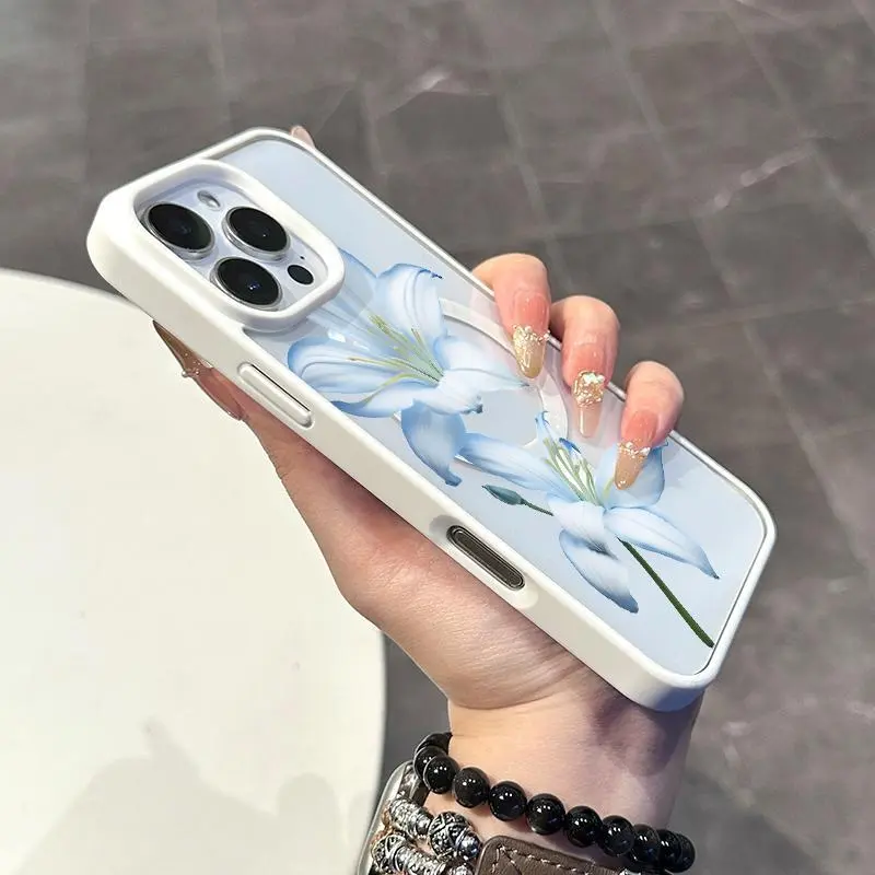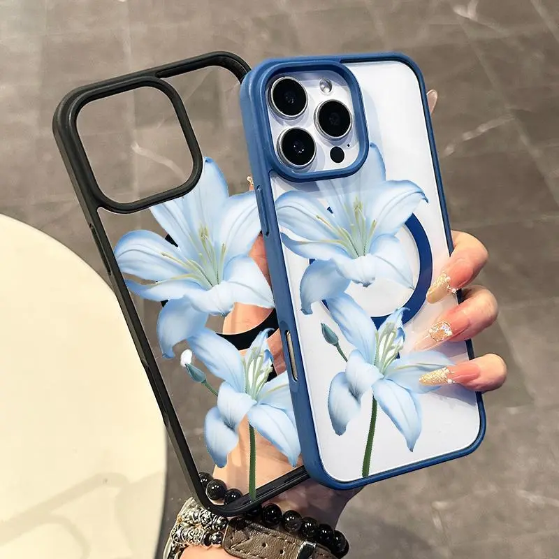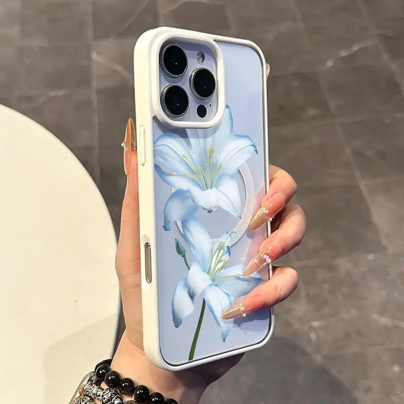 Magnetic Compatible Case suitable for iPhone 17 16 15 14 13 12 11pro promax plus, Blue Lilies MagSafe Ready, Anti-Slip, Ultra Thin | Aesthetic Touch for Daily Use