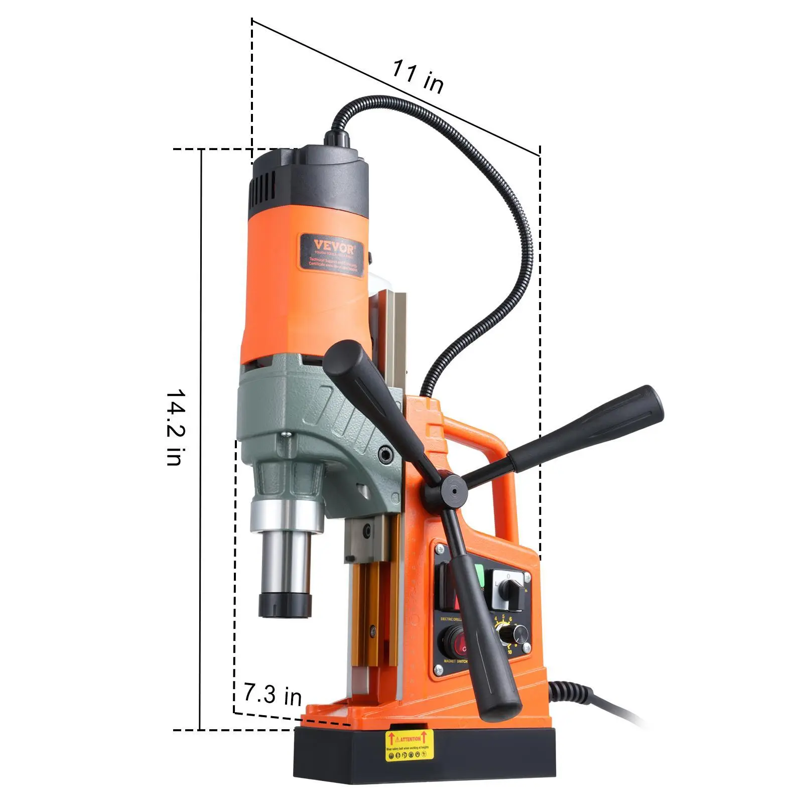 • Top-level Magnet: Get ready for unstoppable power! This 1450W heavy-duty mag drill bores at 0-800 RPM up to 50mm depth and 50mm across, consistently generating enormous power to drill through rigid materials. 12800N robust force created by the electromagnetic base on the two ends anchors the mag drill press solidly to avoid movement during the drilling process.