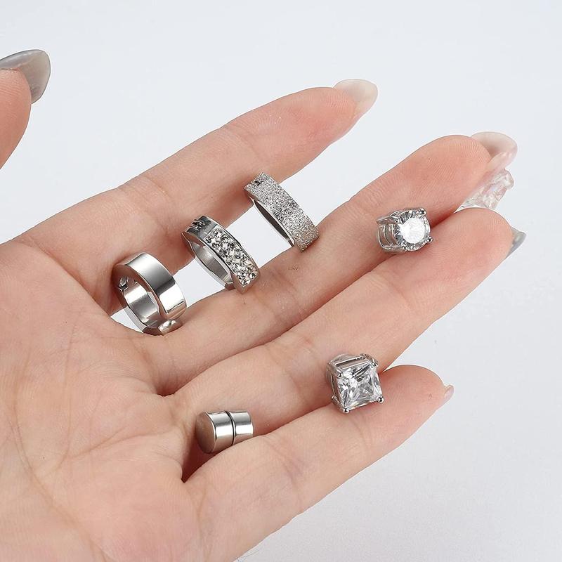 Magnetic Earrings Set: One order including 6 pairs magnetic earrings: one round zircon magnetic earrings, 1 pairs square zircon magnetic earrings, 1 pairs magnetic stud earrings, 1 pairs cz hoop, 1 pairs smooth surface, 1 pairs brushed surface, multiple choices for you. Exquisite set in a reasonable price, deserve to purchase, meet your daily needs.