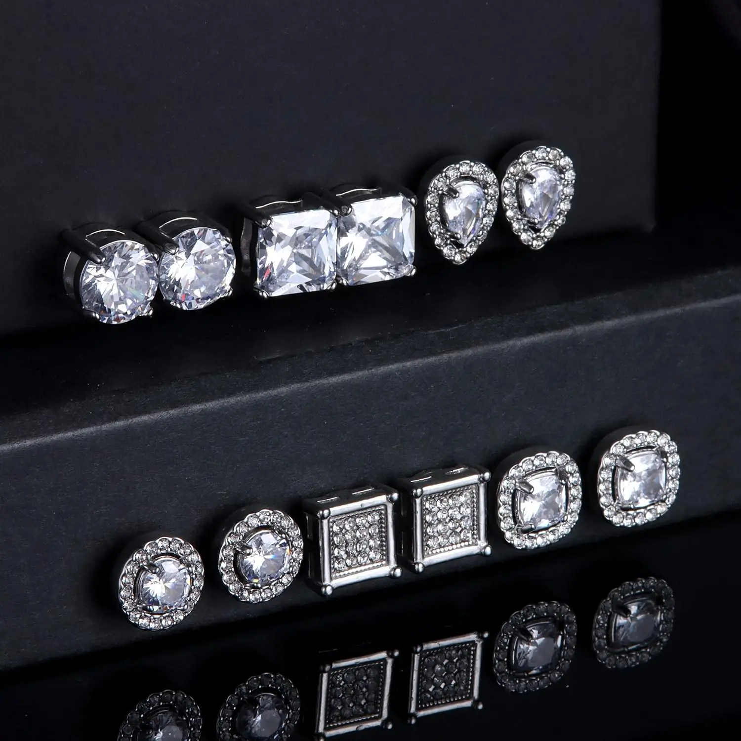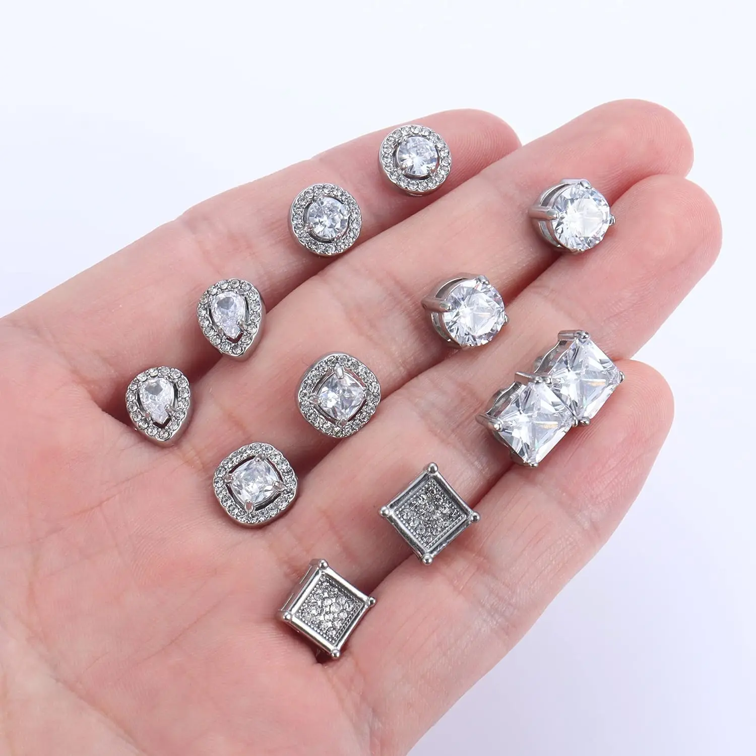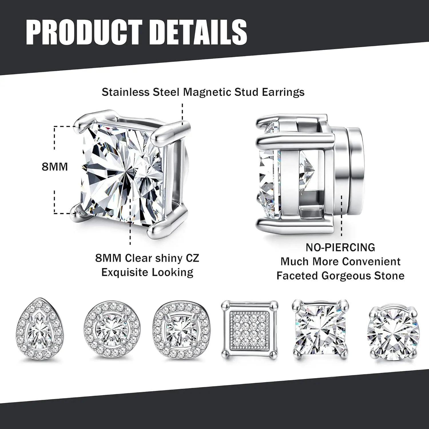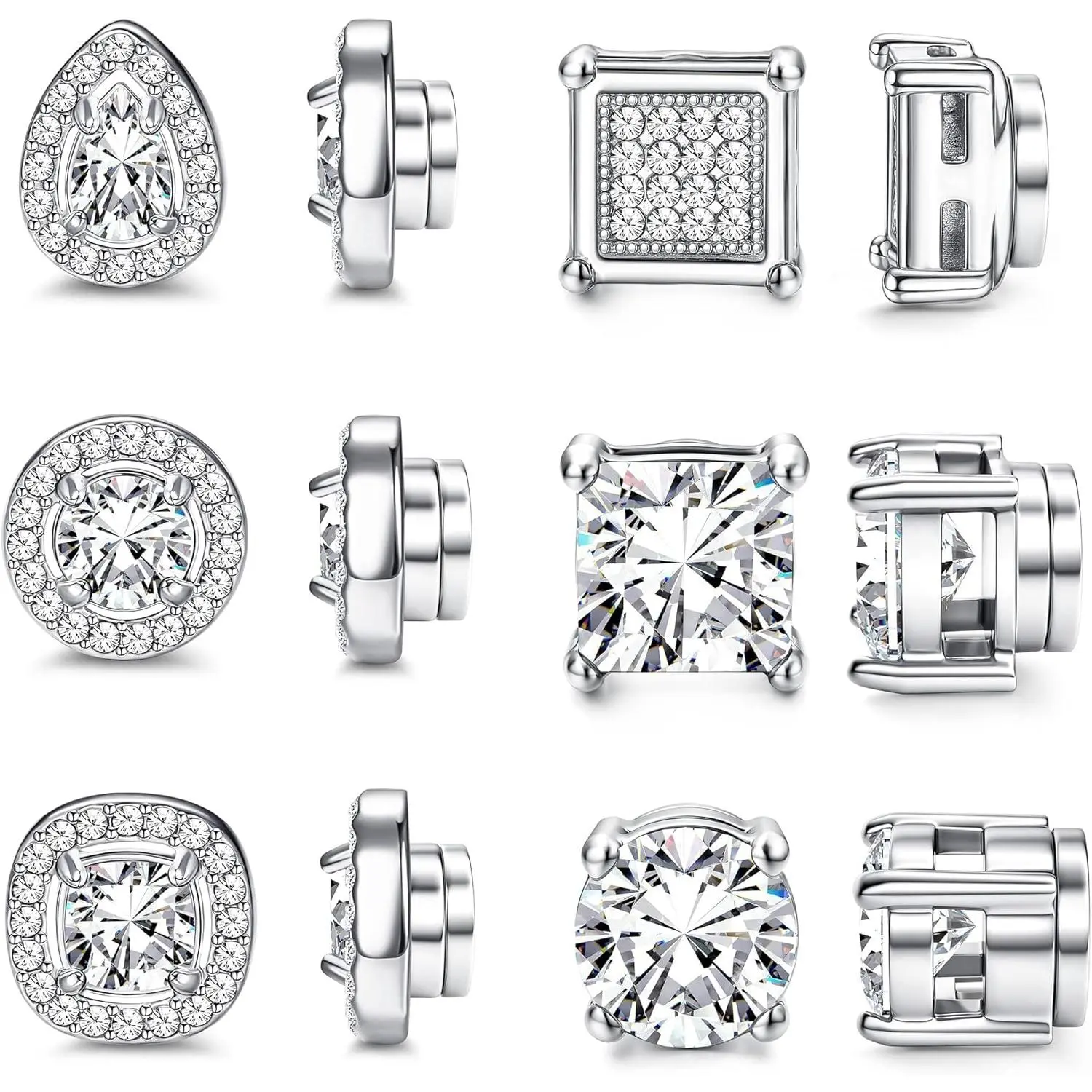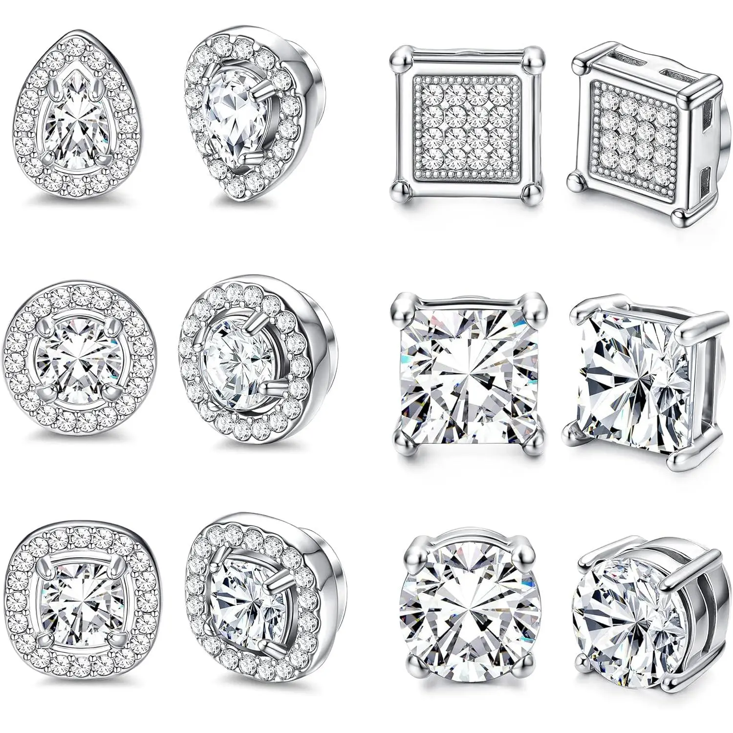 ·6 Pairs Pack :One order comes with 6 pairs Magnetic Earrings,including round CZ stud earrings, square CZ stud earrings, round halo earrings, square halo earrings and teardrop halo earrings.Affordable small stud earrings set, deserve to purchase.