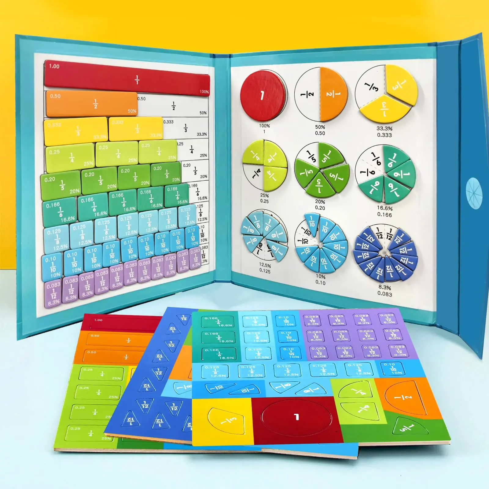 ·Educational Tool: This Magnetic Fraction Demonstration Book is a 1 Set Math Teaching Aid. It's perfect for learning and training mathematical knowledge.
