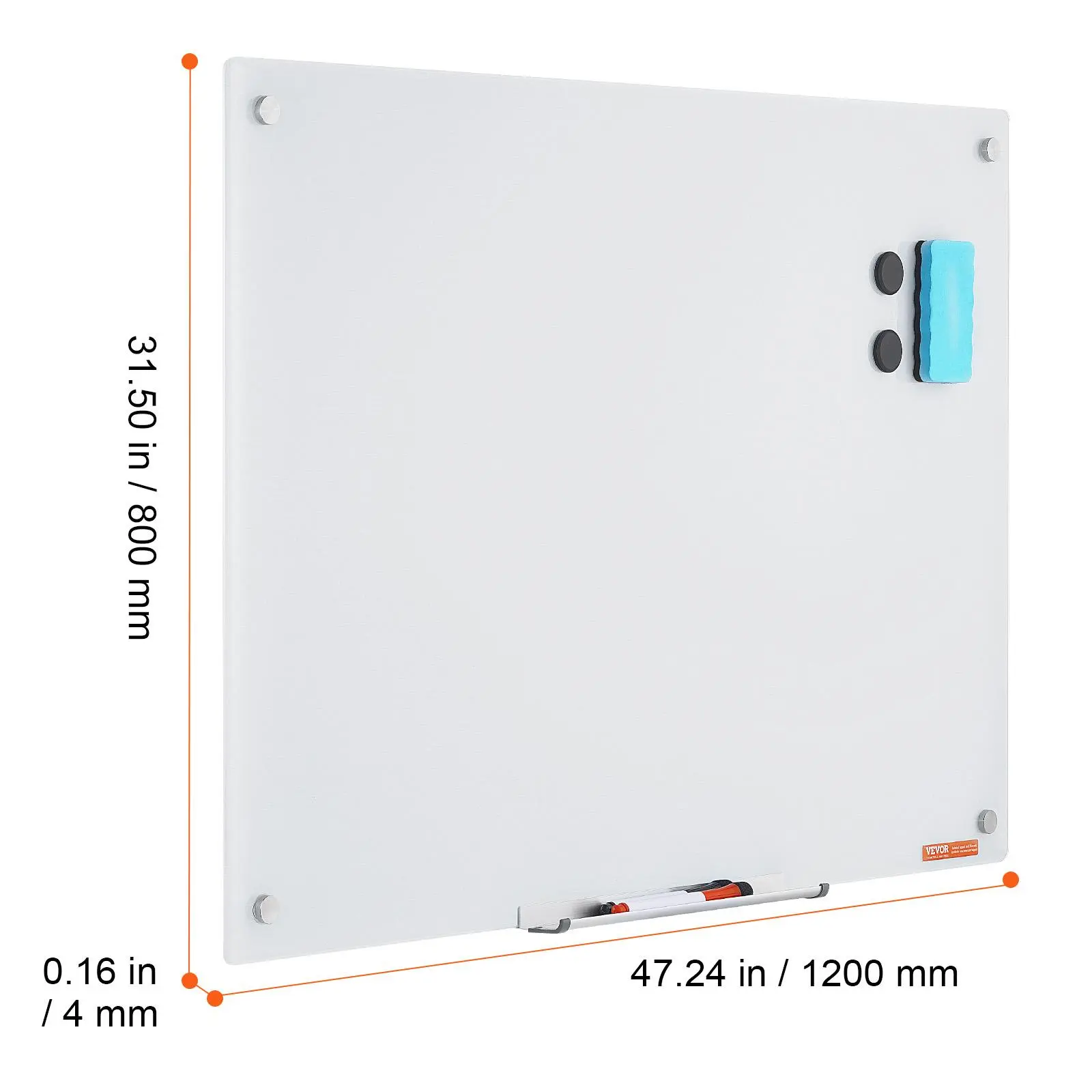 • Effortless Installation: No hassle installation, thanks to included positioning paper and stainless steel screws. Mounting is quick and convenient, requiring no lifting of the glass dry erase board.