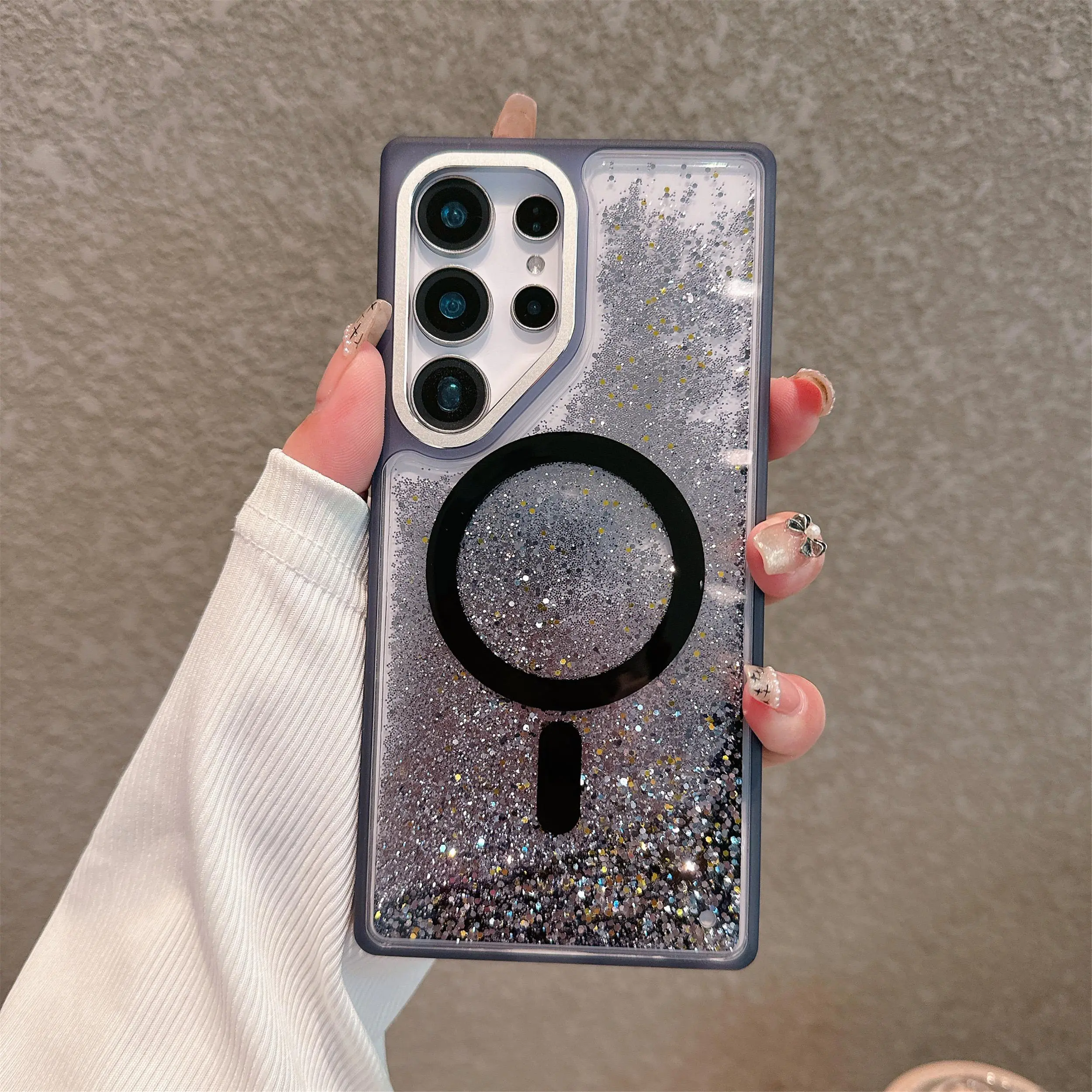 ✨ Elevate Your Device with Style! ✨ Glitter liquid glitter magnetic case fits iPhones & Samsung models. Choose from black, gold, or silver options. This case features a liquid dynamic design that adds a touch of glamour to your device. It's wireless charging ready, ensuring convenience without compromising on style.