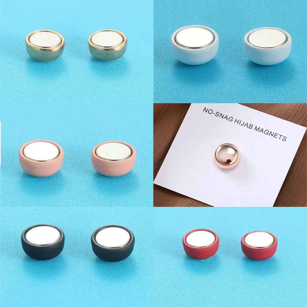 Secure your hijab with ease using these 6 pairs of magnetic hijab fasteners. The strong metal coating ensures a secure hold all day long.