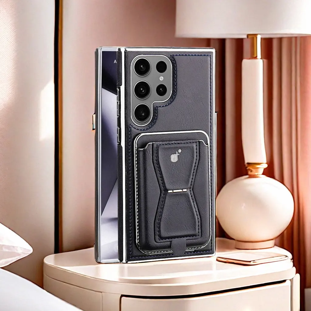 Rugged Wireless Magnetic Holder Phone Cases For S24/23/22 Ultra Men Business Leather Shockproof Cover With Card Slots