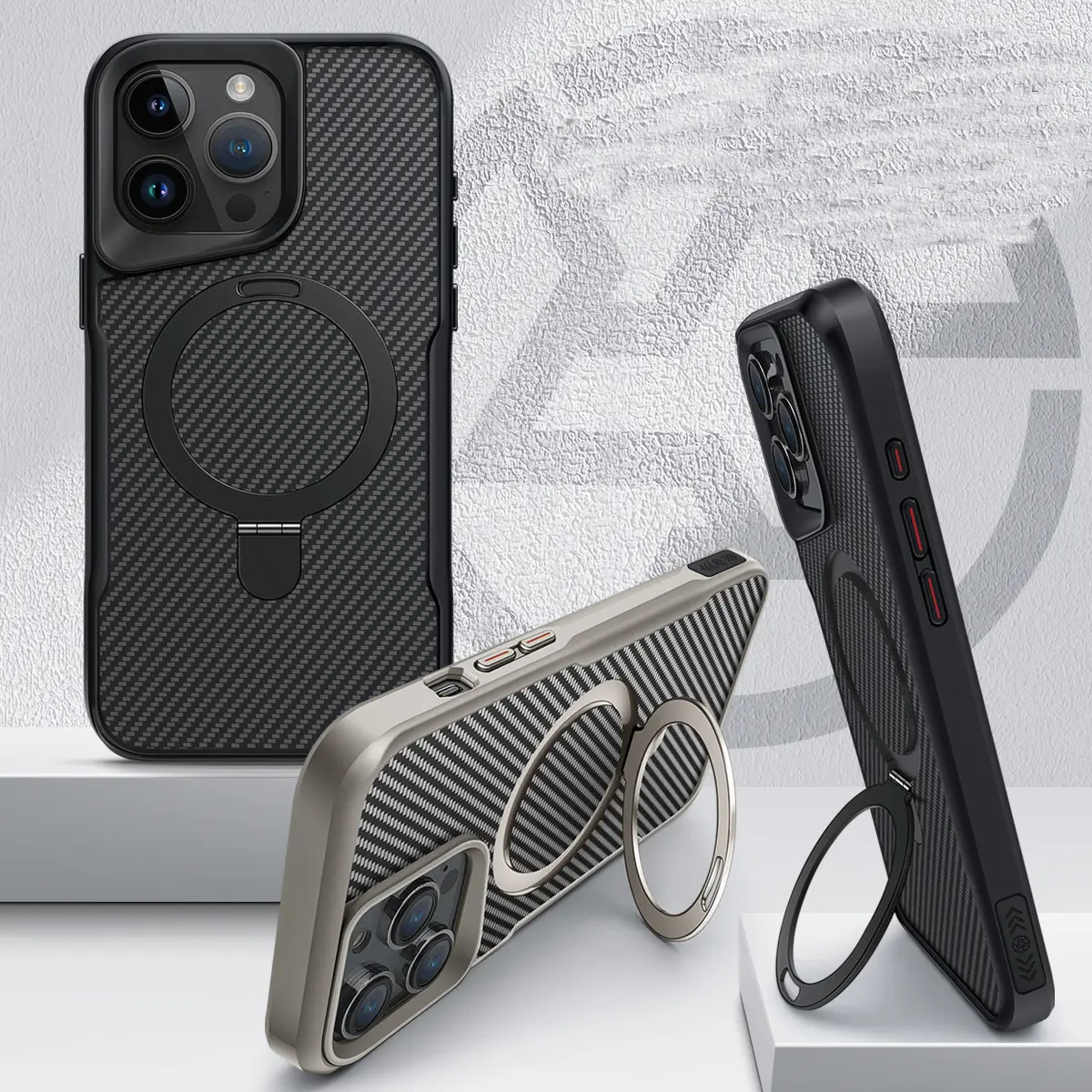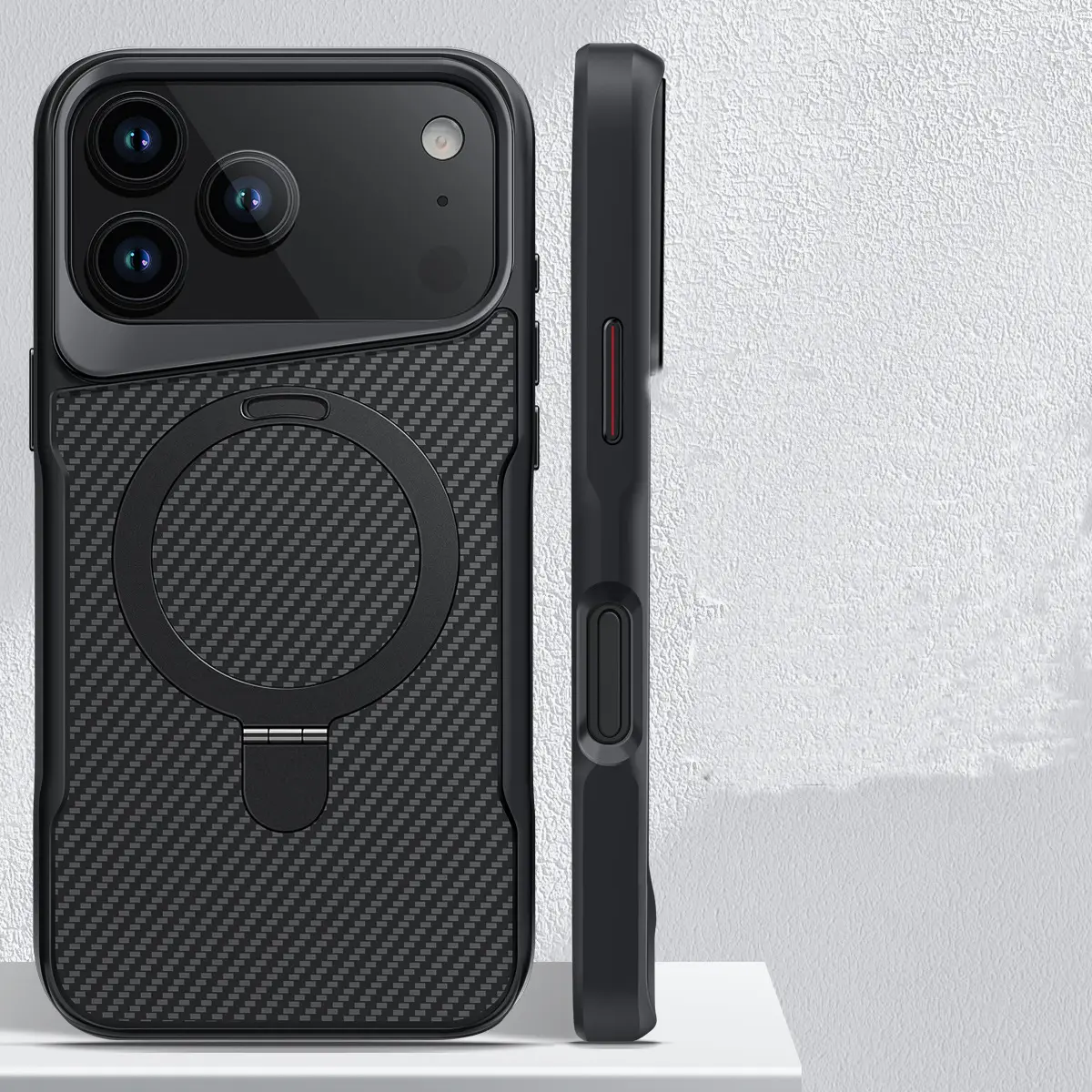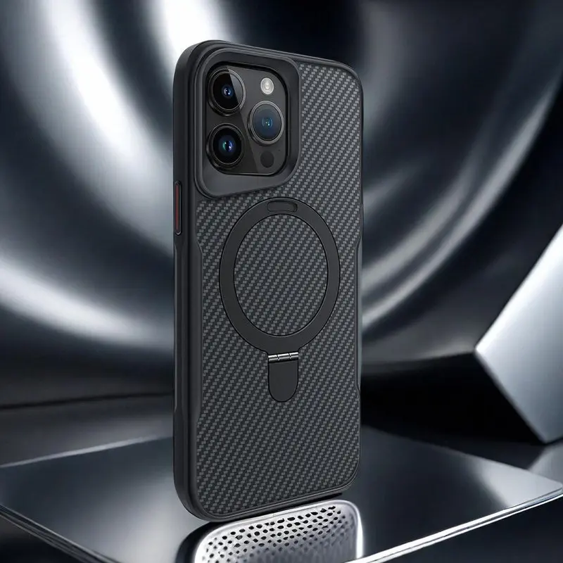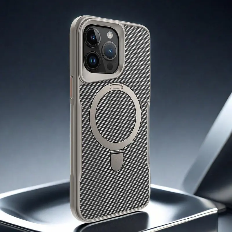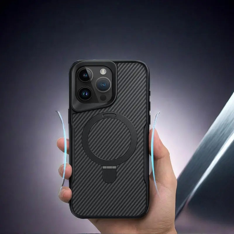 Magnetic Invisible Ring Stand Case for iPhone 17 Pro Max/16 Plus/15/14/13/12 Pro - Hard Back Panel with Strong Grip Viewing, Shockproof Protective Cover-HN-PG01