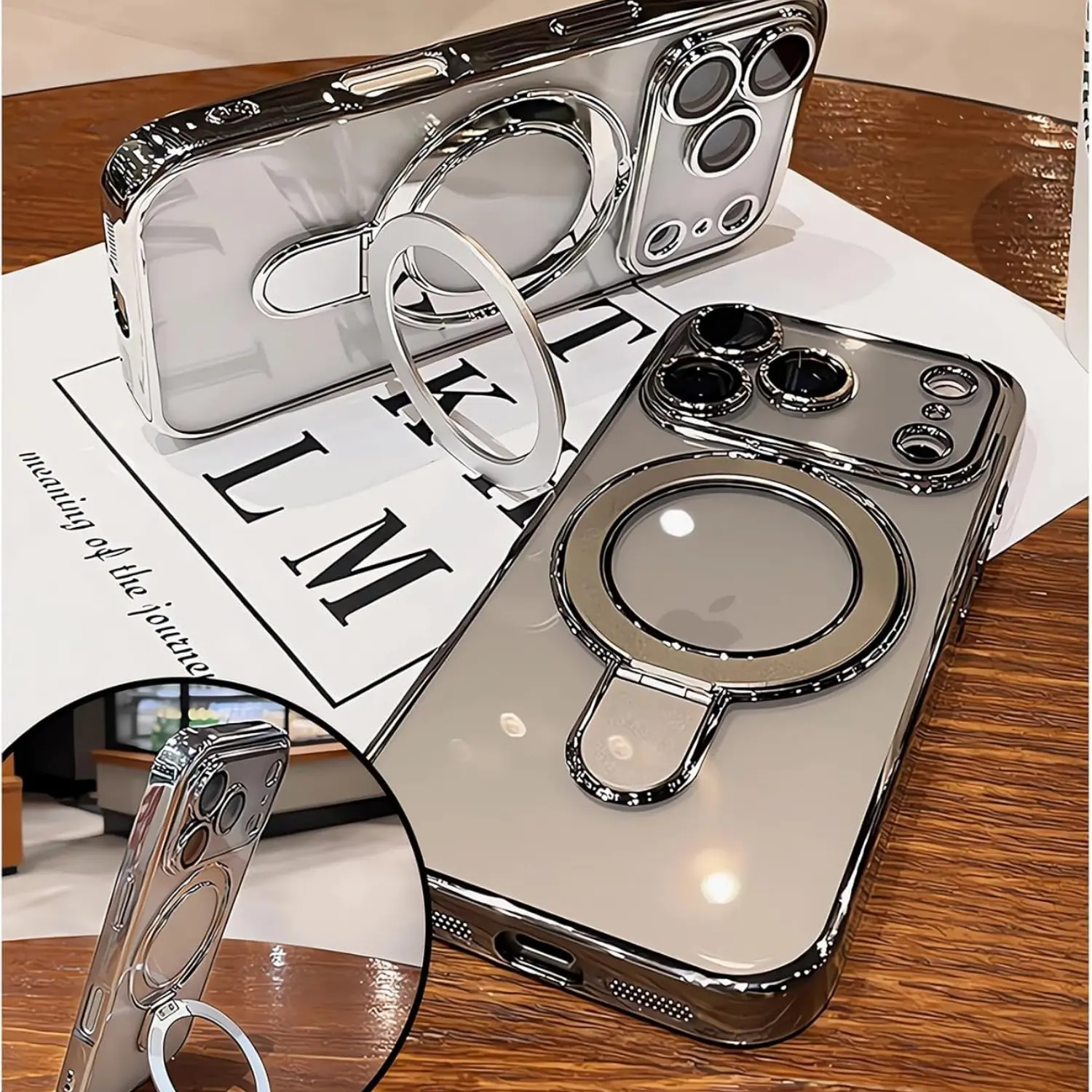Pros: Shiny chrome edges, impressive sleek look. The phone stand on the back allows for phone to stand up vertically. Lens clarity is excellent.