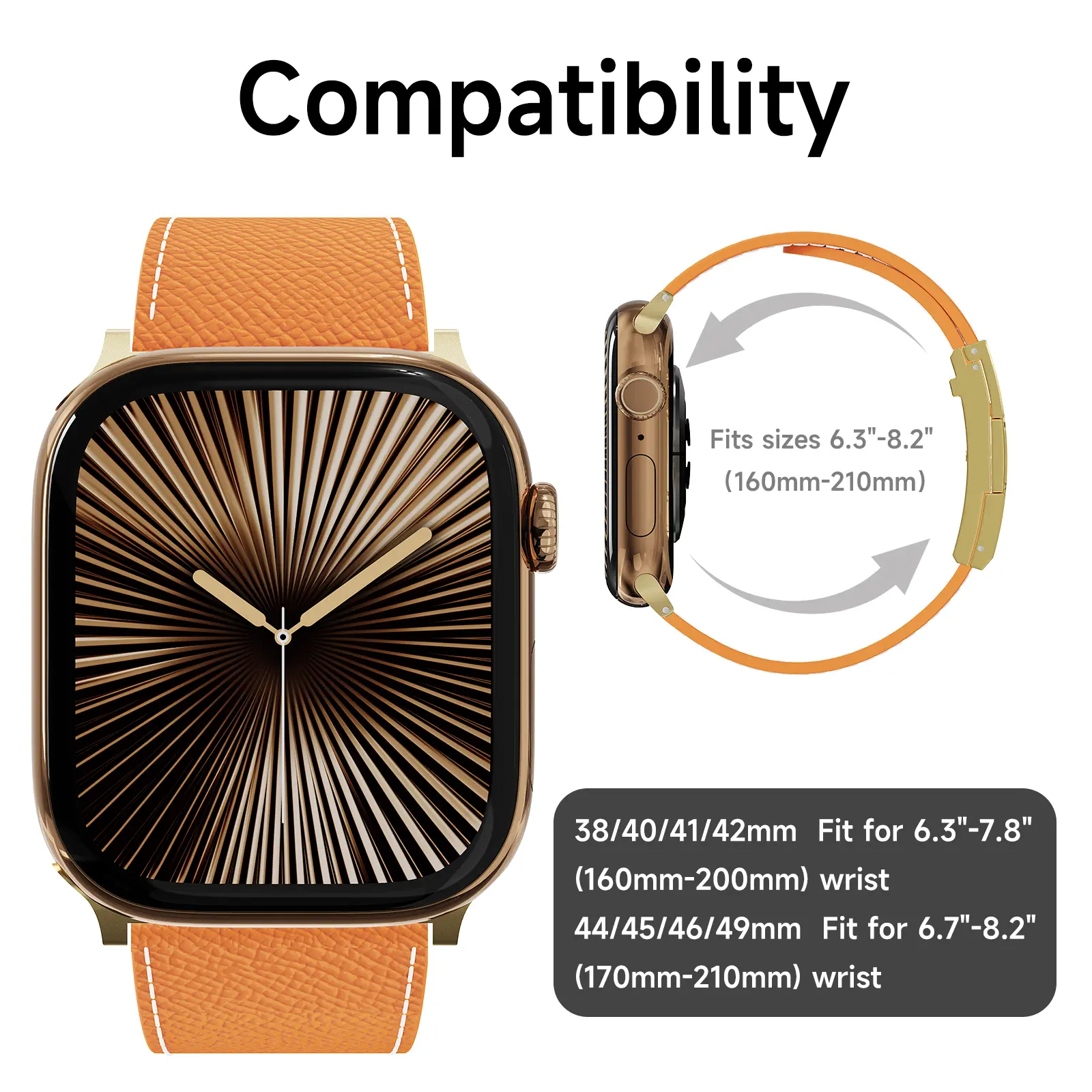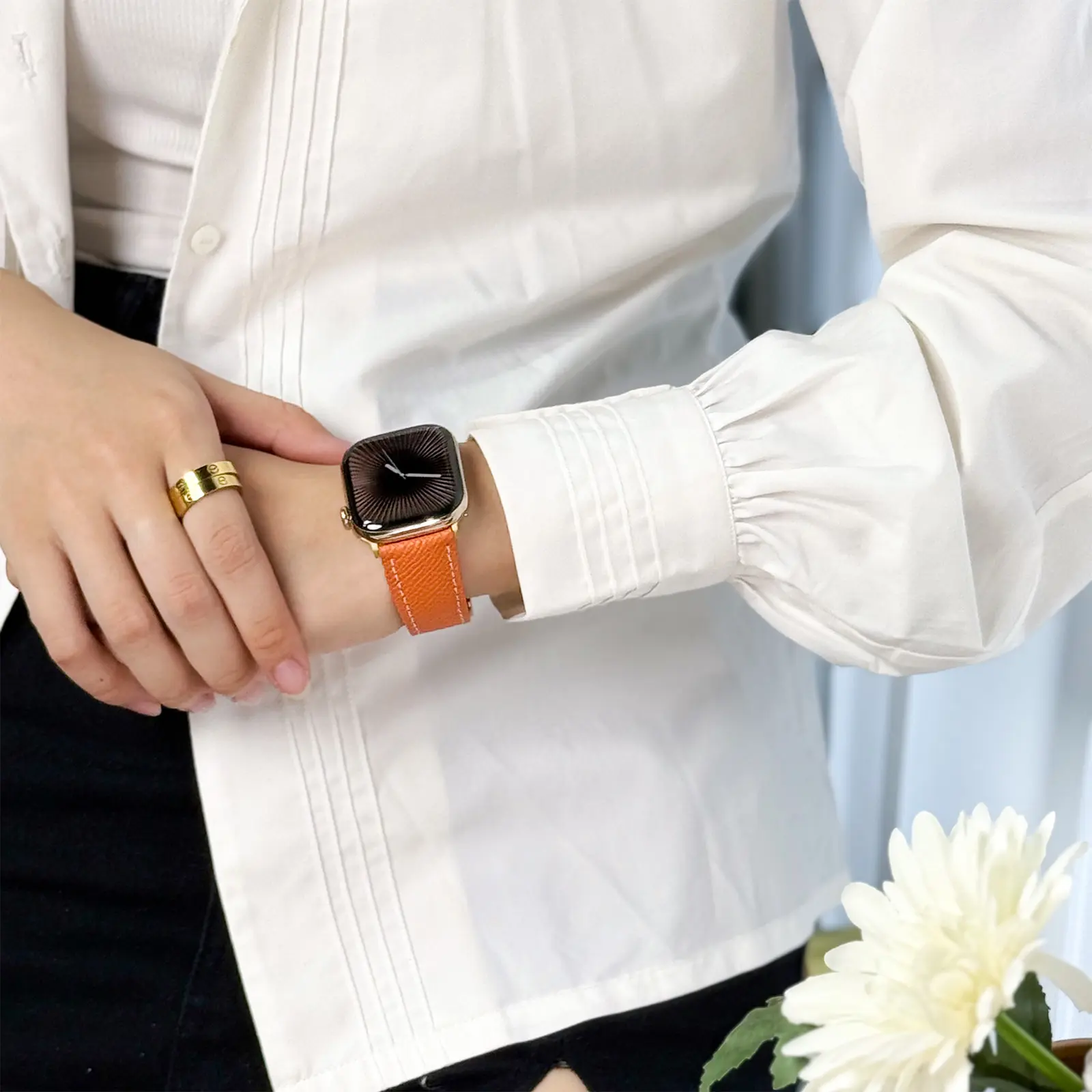 This leather band fits 38-49mm square smartwatches