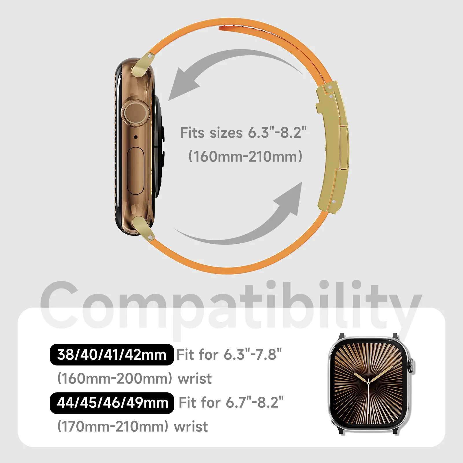 Band fits wrist sizes 160–210mm(6.3-8.2in)