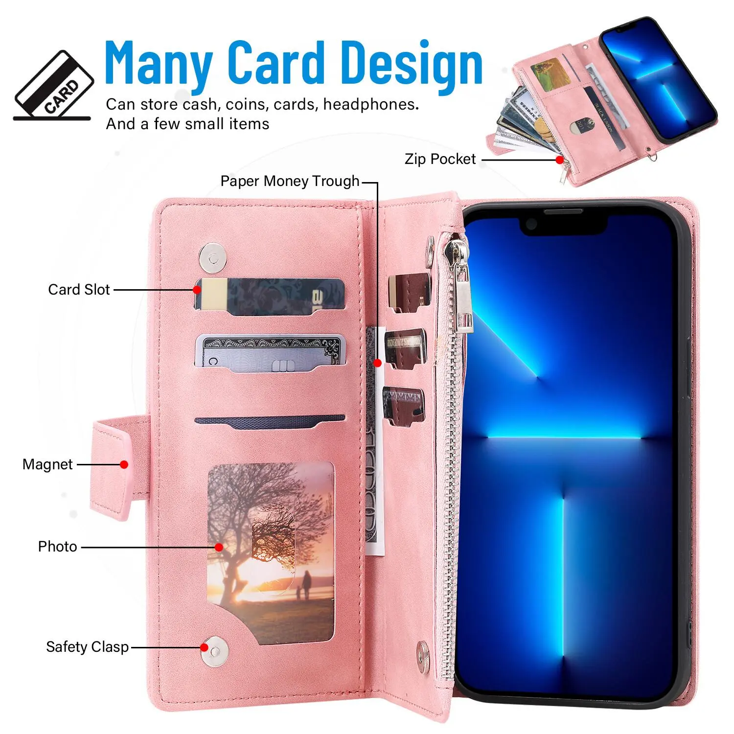 Flip Leather Zipper Wallet Case Foldable Shockproof Flip Stand Cover