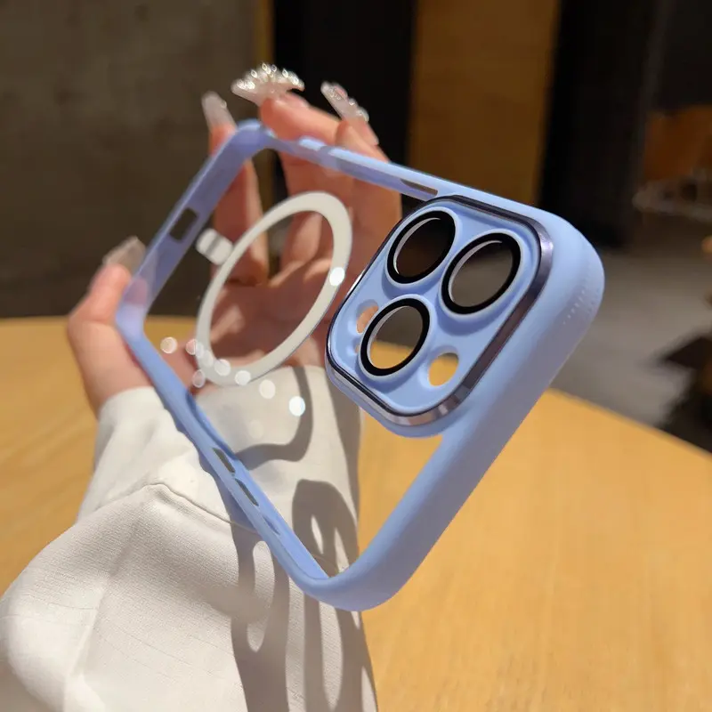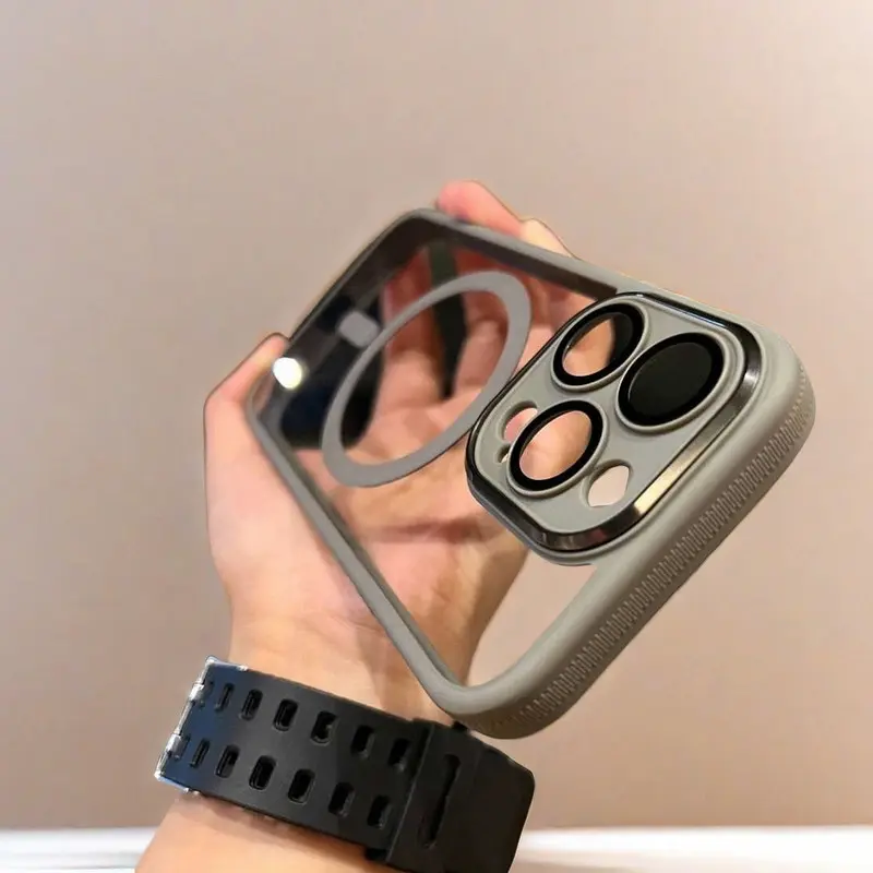 For iPhone 16 /15/14/13 metal lens magnetic phone case transparent anti drop protective cover NH10