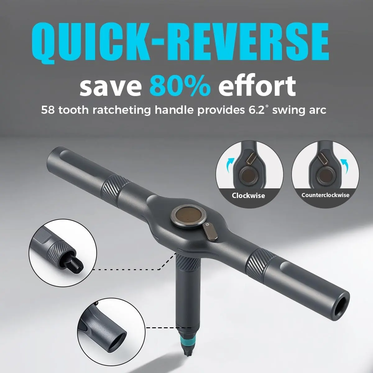【Detachable Handle】: Includes a detachable T-shaped ratchet handle for versatile handling and improved torque.