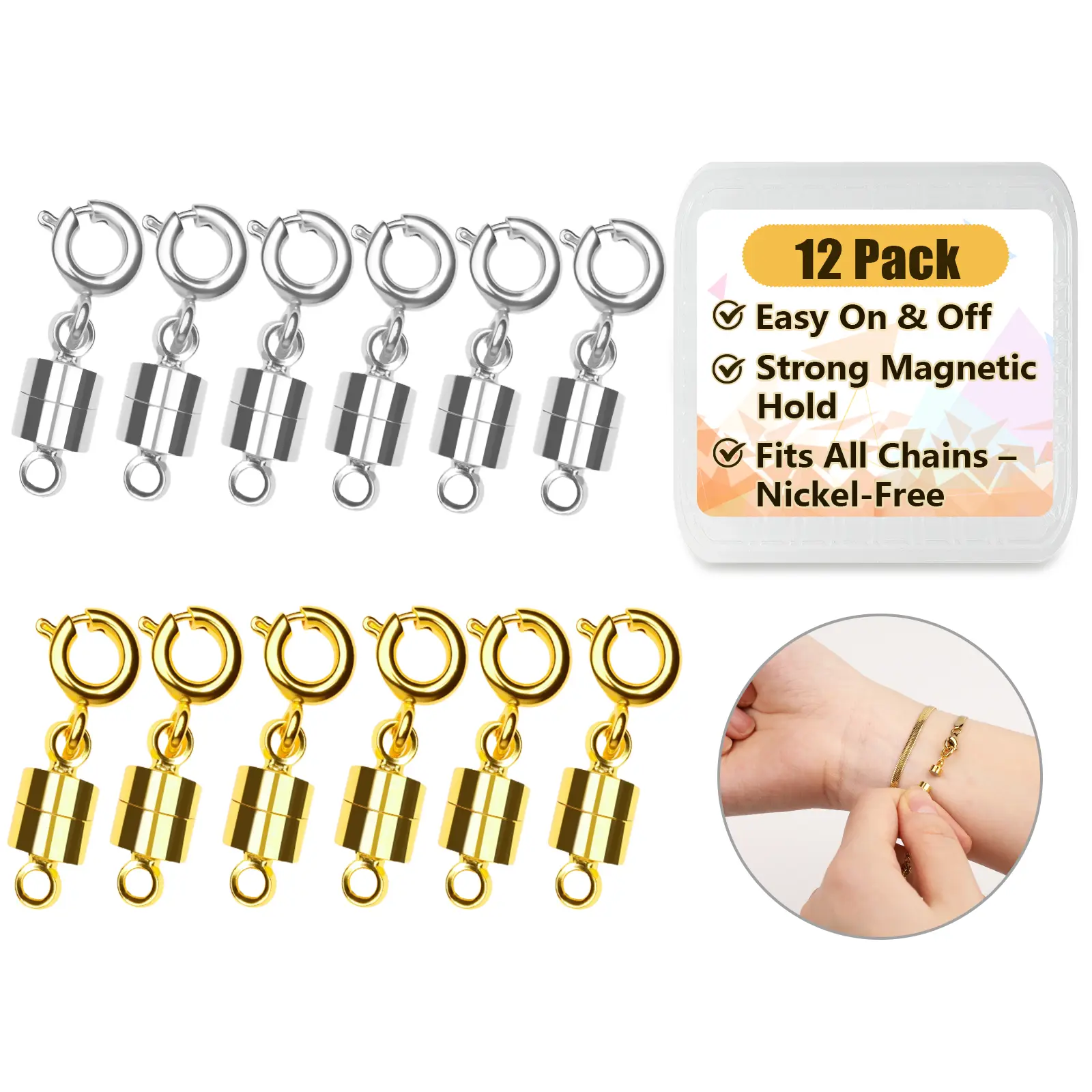 These fasteners are FANTASTIC! Magnets are strong and make putting jewelry on and taking it off a BREEZE. I even used it on my bracelet that is hard to clasp! Would definitely recommend!