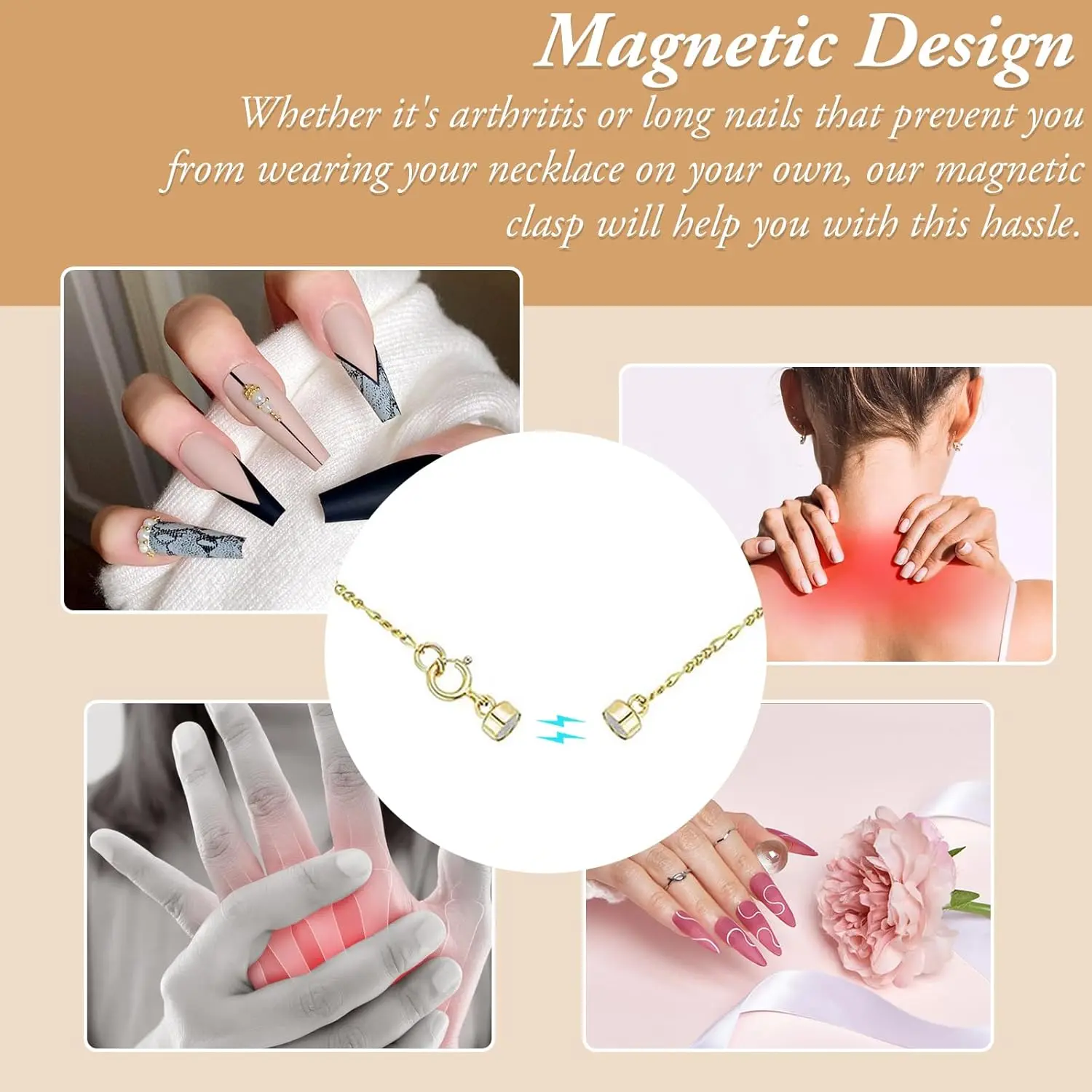 I like these a lot. Saves a lot of time putting on your necklace more before I was fumbling and I would try and try again to put the necklace on this way. It’s just attracts to each other and it’s on.