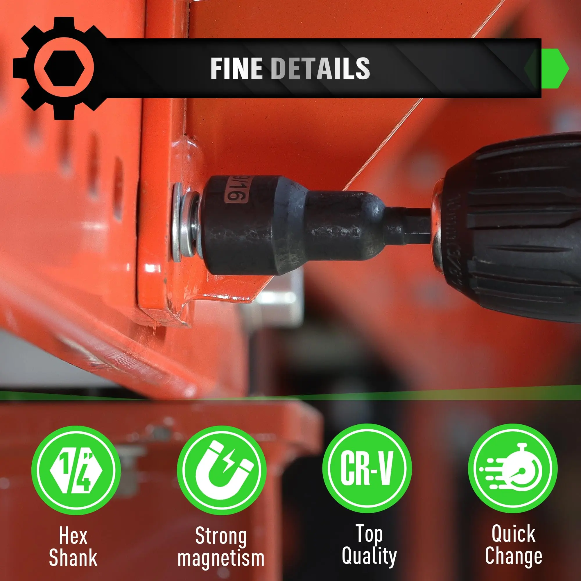 ·PREMIUM MATERIALS - Constructed from industrial grade chromium vanadium steel, this 20-piece magnetic nut driver set is built to last. The black phosphate coating ensures superior corrosion resistance, making it perfect for long-term use in any environment.