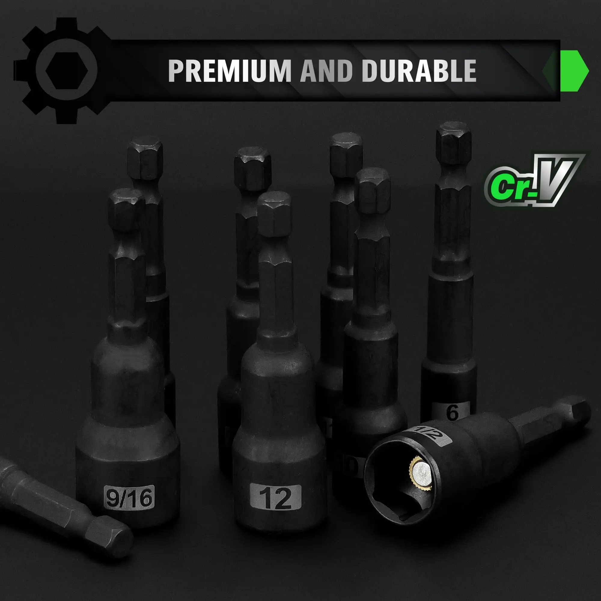 ·CLEAR IDENTIFICATION - Each impact nut driver has clearly marked sizes for easy identification. This feature saves you time and increases efficiency, allowing you to quickly find the right tool for the job without hassle.