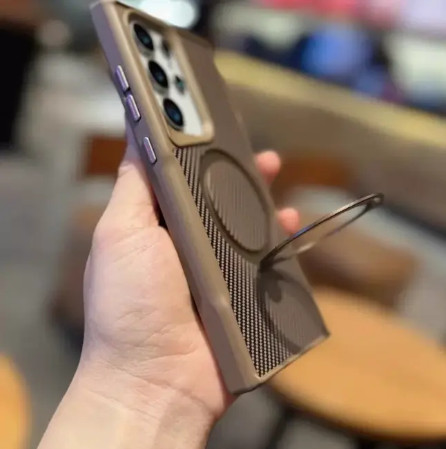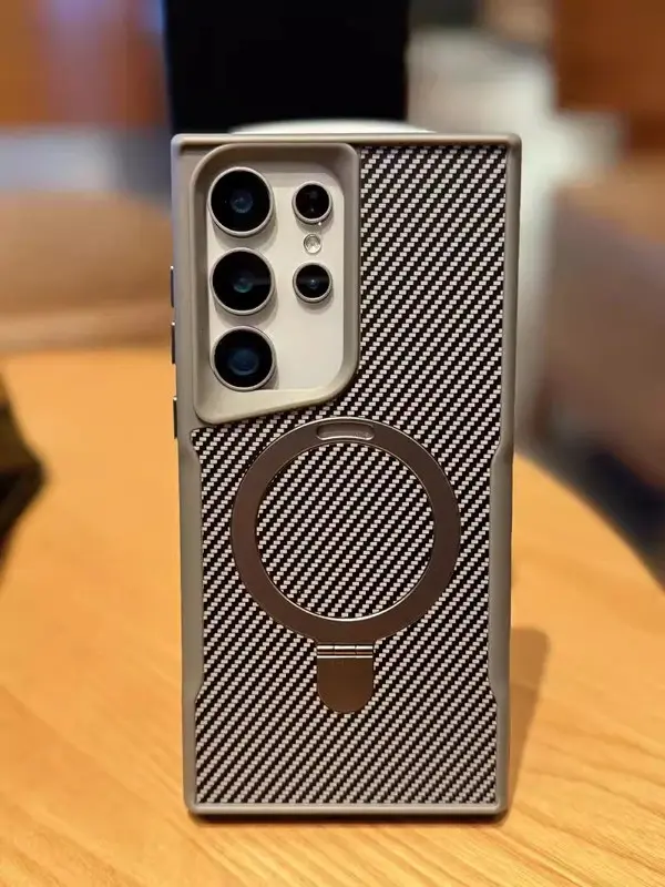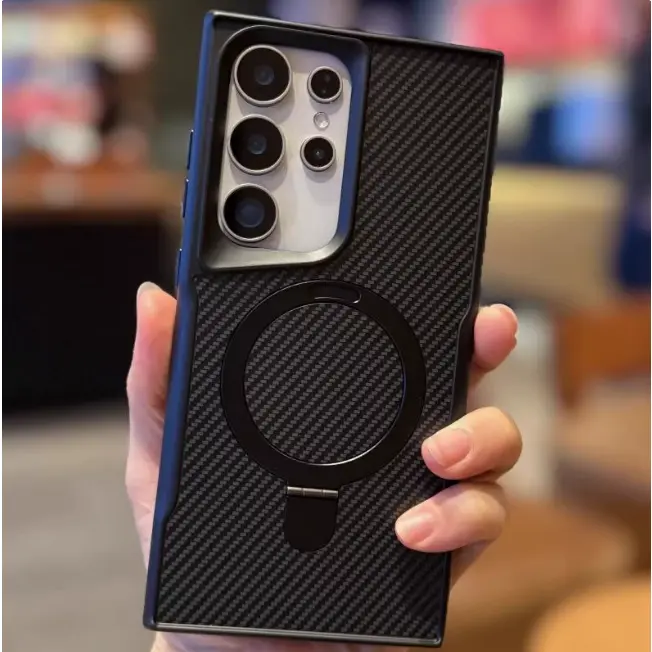 5. Compatible with New Carbon Fiber Texture Phone Case for S25 Ultra/S24/S23/S22 With Invisible Kickstand Shockproof PC Hard Cover HNXMY-2