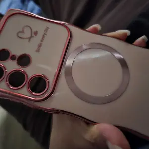 ·Image: The image shows the phone case in two colors: pink and white, with a magnetic charging pad included
