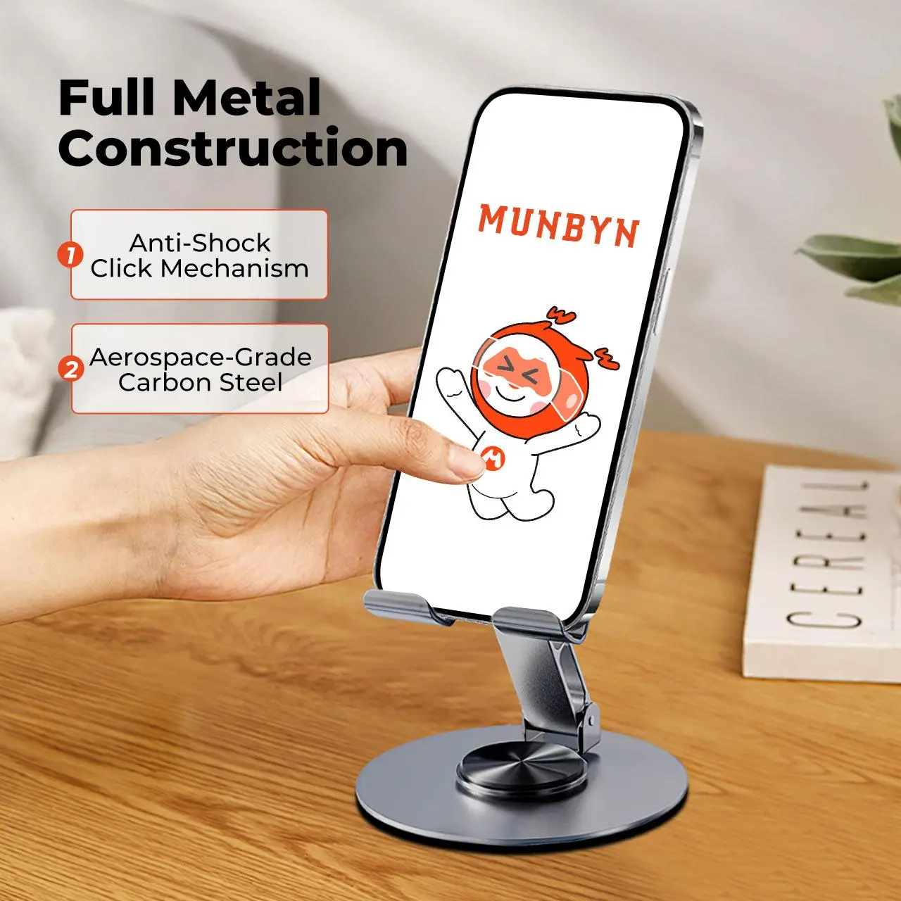 Ever wish your phone or tablet stand was as flexible and tough as your busy lifestyle? Meet the MUNBYN 360° Stable Alloy Phone and Tablet Holder—a sleek, ultra-strong companion designed to keep your devices steady whether you're working at your desk or chilling on the sofa. Crafted from aerospace-grade carbon steel, this compact stand offers a full 360° rotation and 135° flex, letting you switch effortlessly between portrait and landscape modes. Its anti-shake and anti-shock technology means your device stays put, even during those frantic typing sessions or video calls. Weighing less than an iPhone 14 and folding flat to a wallet-friendly size, it’s perfect for on-the-go use. The built-in all-metal rotating shaft and tested hinges ensure durability through thousands of adjustments. Included in the box is the foldable stand itself, ready to elevate your workspace or entertainment setup. Whether at home, the office, or traveling, this holder blends strength, style, and convenience. Upgrade your device experience—grab your MUNBYN holder and enjoy hands-free freedom wherever life takes you!