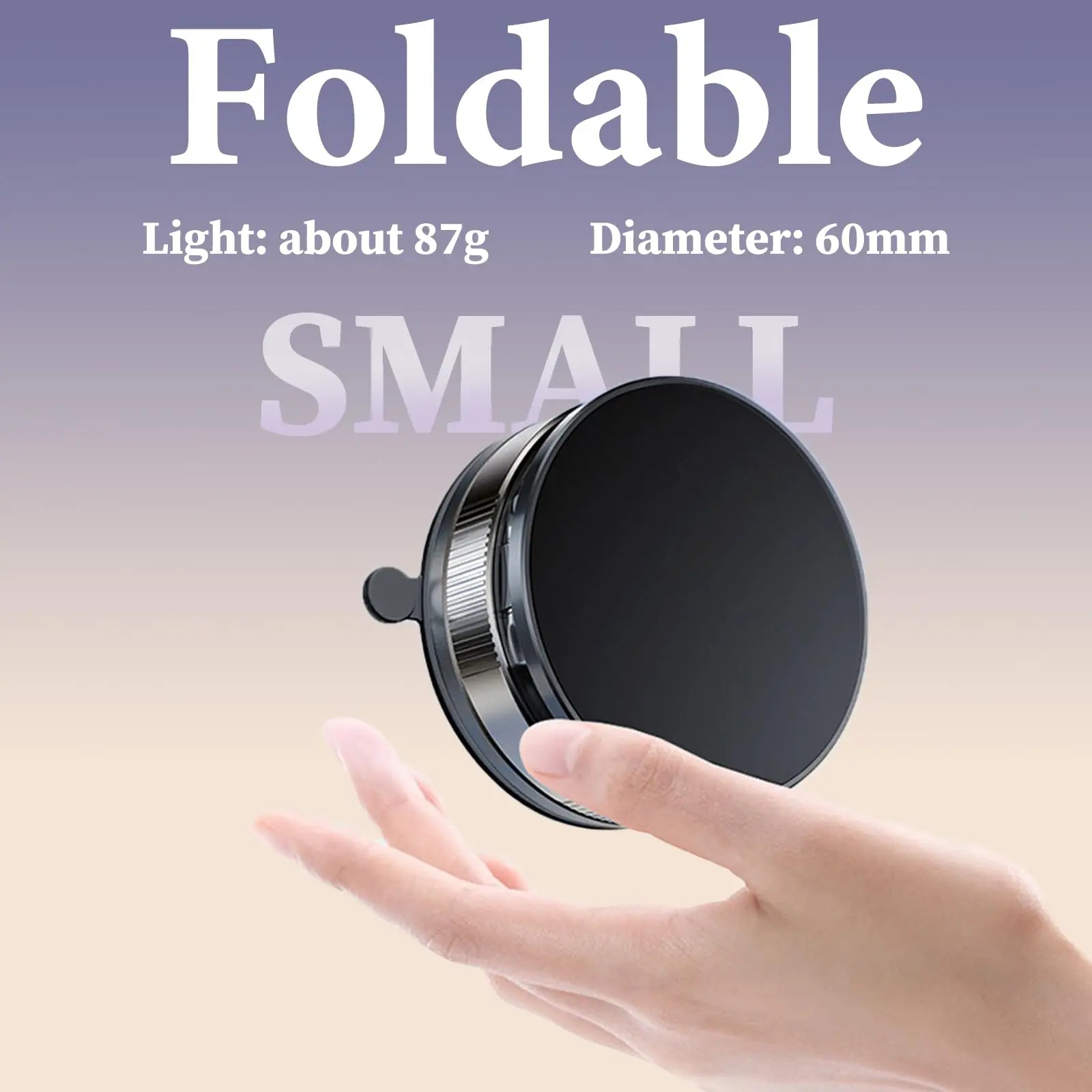 [360° & 180° Dual-Axis Adjustability]This vacuum magnetic phone mount features a dual-axis foldable ring-shaped metal arm with 180° adjustment and a 360° swivel base, allowing you to flexibly adjust to your desired angle and securely hold it. Extensive testing has proven its superior stability. The innovative folding design reduces its volume by 50% when not in use, keeping your workspace tidy.
