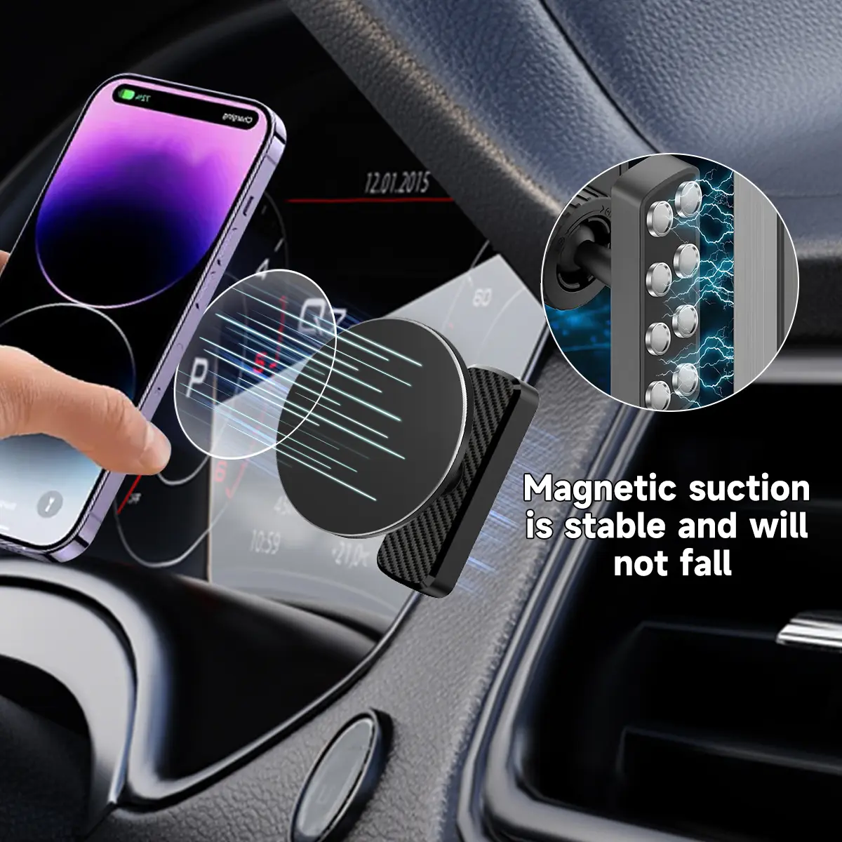 Universal Compatibility–iPhone & Android Ready: Built with 17 powerful N54 magnets, this magnetic phone holder snaps seamlessly to iPhone 12-17 series. Includes a metal ring for Android devices, ensuring wide compatibility—perfect for gym phone mount setups.