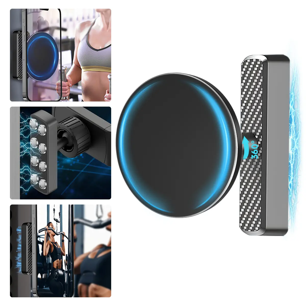 Magnetic Phone Holder for Gym, Alloy Base & Ball Joint, 360 Adjustable Phone Mount, Universal Fitness Equipment Accessories Essentials