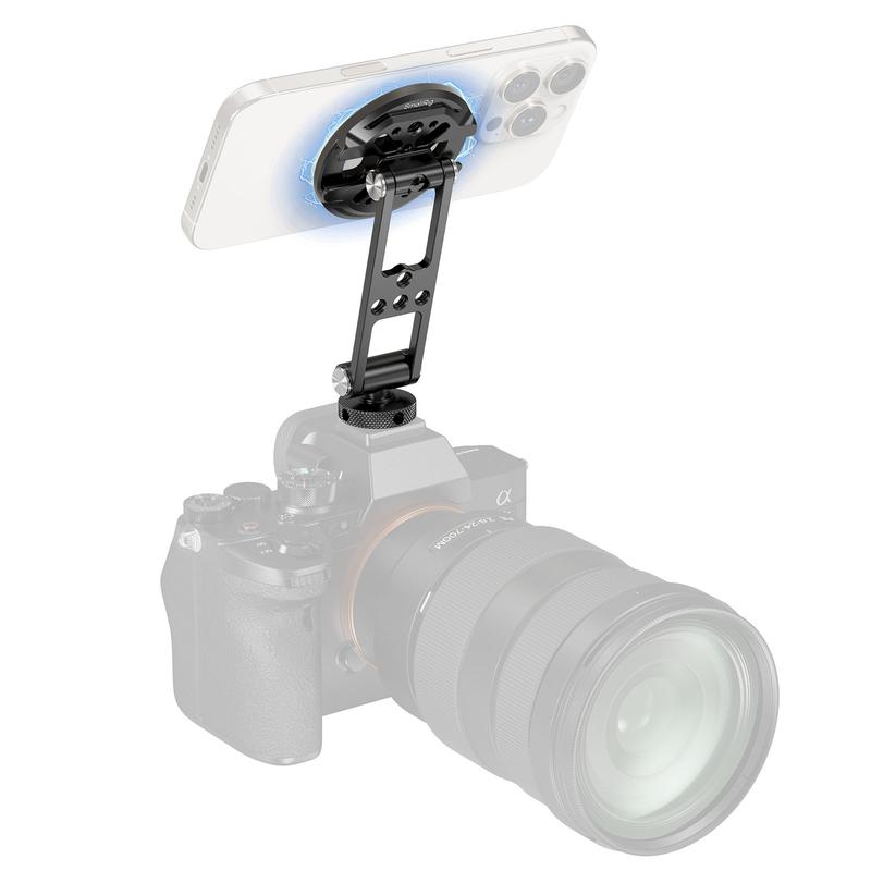 1.Magnetic attachment for quick smartphone mounting, facilitating camera-top monitoring