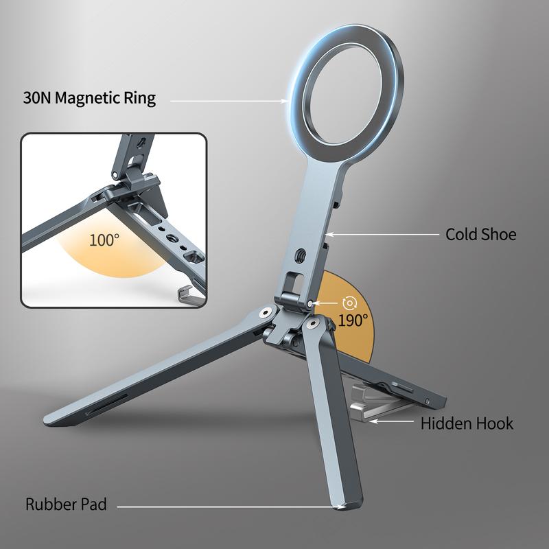 This innovative tripod is compatible with Magsafe for iPhone series and features a 1/4" screw tripod mount for easy setup.