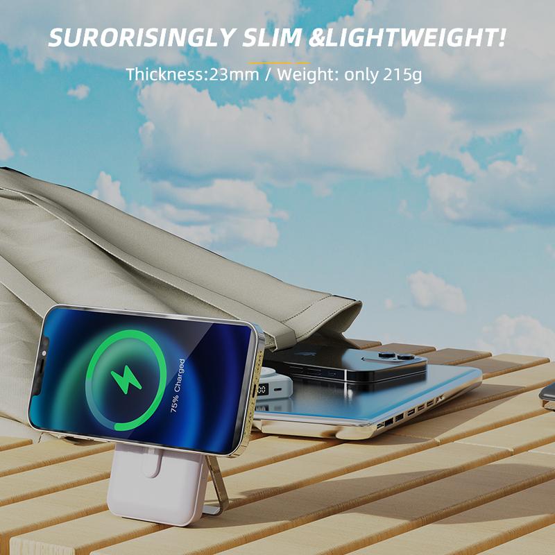 Ever find yourself scrambling for a charger during outdoor adventures or emergencies? This 20000mAh fast magnetic power bank is your perfect travel buddy. Its huge battery capacity ensures your phone, tablet, or other devices stay powered no matter where you roam. Thanks to fast wireless charging with magnetic MagSafe compatibility, iPhone users can effortlessly snap on and juice up without fumbling with cords. The sleek, ultra-thin 23mm design slips easily into your backpack or pocket, making it ideal for on-the-go lifestyles. Multiple ports including Apple Connector, Type-C, and USB let you charge up to six devices at once — perfect for group trips or busy days. Plus, the built-in hidden stand adds convenience for hands-free use. Safety is top priority with a multi-protection system guarding against overcharge, short circuits, and more, so you can charge with confidence. Weighing only 215 grams, it’s lightweight yet powerful. Whether hiking, traveling, or just tackling your daily routine, this power bank keeps your essential devices charged and ready. Grab yours today and stay connected wherever life takes you!