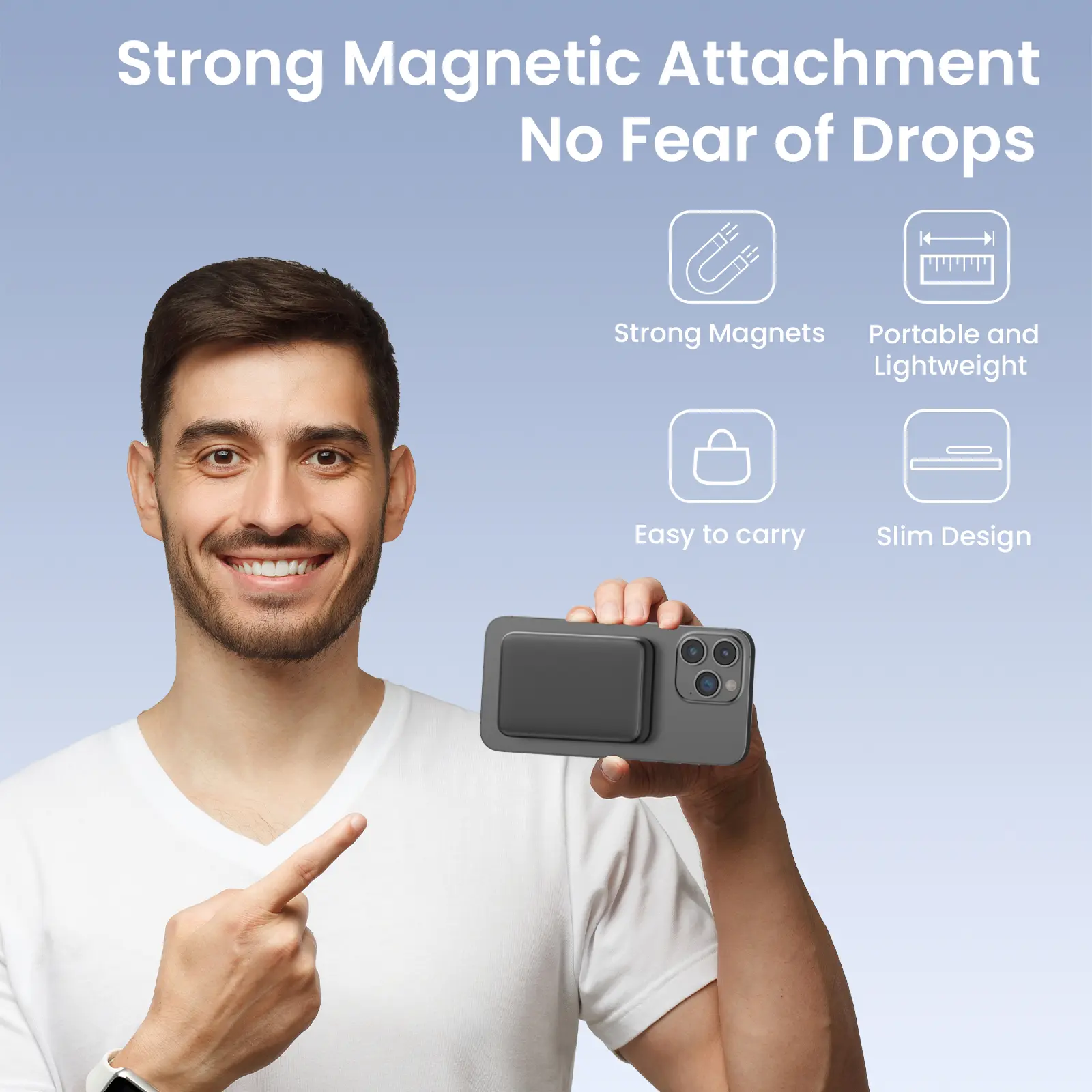 Sleek & Portable: The magnetic portable charger only measures 4.2 x 2.83 x 0.83 inches to achieve maximum portability, slim enough to snap to your phone and slip into your pack, purse, or pocket.