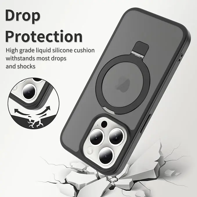 Ever fumble with your iPhone while trying to snap a pic or watch a video? Our Magnetic Ring Holder Phone Case is here to save the day! This case fits all iPhone 11 through 17 Pro Max models and offers a secure magnetic ring holder that keeps your grip strong and your phone safe from accidental drops. The durable shockproof design shields your device from everyday bumps and knocks, so you can feel confident carrying it anywhere. Plus, the built-in kickstand lets you kick back and enjoy hands-free viewing – perfect for binge-watching or video calls. Worried about wireless charging? No problem! This case is fully compatible, so you can power up without taking it off. Choose from sleek blue, classic black, or cool grey to match your vibe. Inside the box, you get one magnetic ring holder phone case tailored for your iPhone model. Ready to combine style, protection, and convenience? Grab one today and keep your phone safe and handy every day!