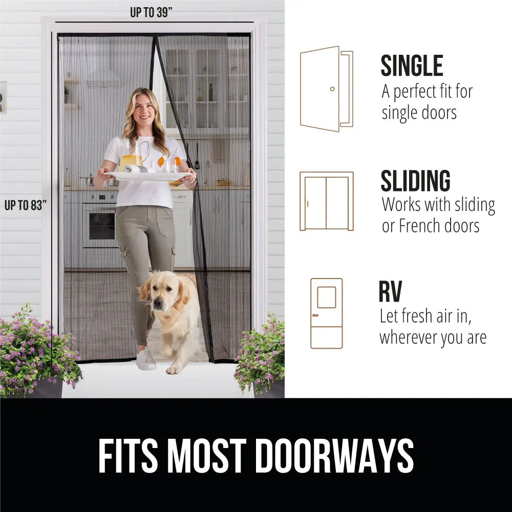 HEAVY DUTY MESH FOR INSECT PROTECTION: Let fresh air in while keeping bugs out; the Gorilla Grip Magnetic Screen Door is constructed from durable and tightly woven polyester mesh that stops insects, dirt, pollen and more from entering your home, while allowing fresh air and natural sunlight in; the small mesh allows total visibility to the outdoors and won’t block your view; keep your doors open and your views of the outside unobstructed at all times.