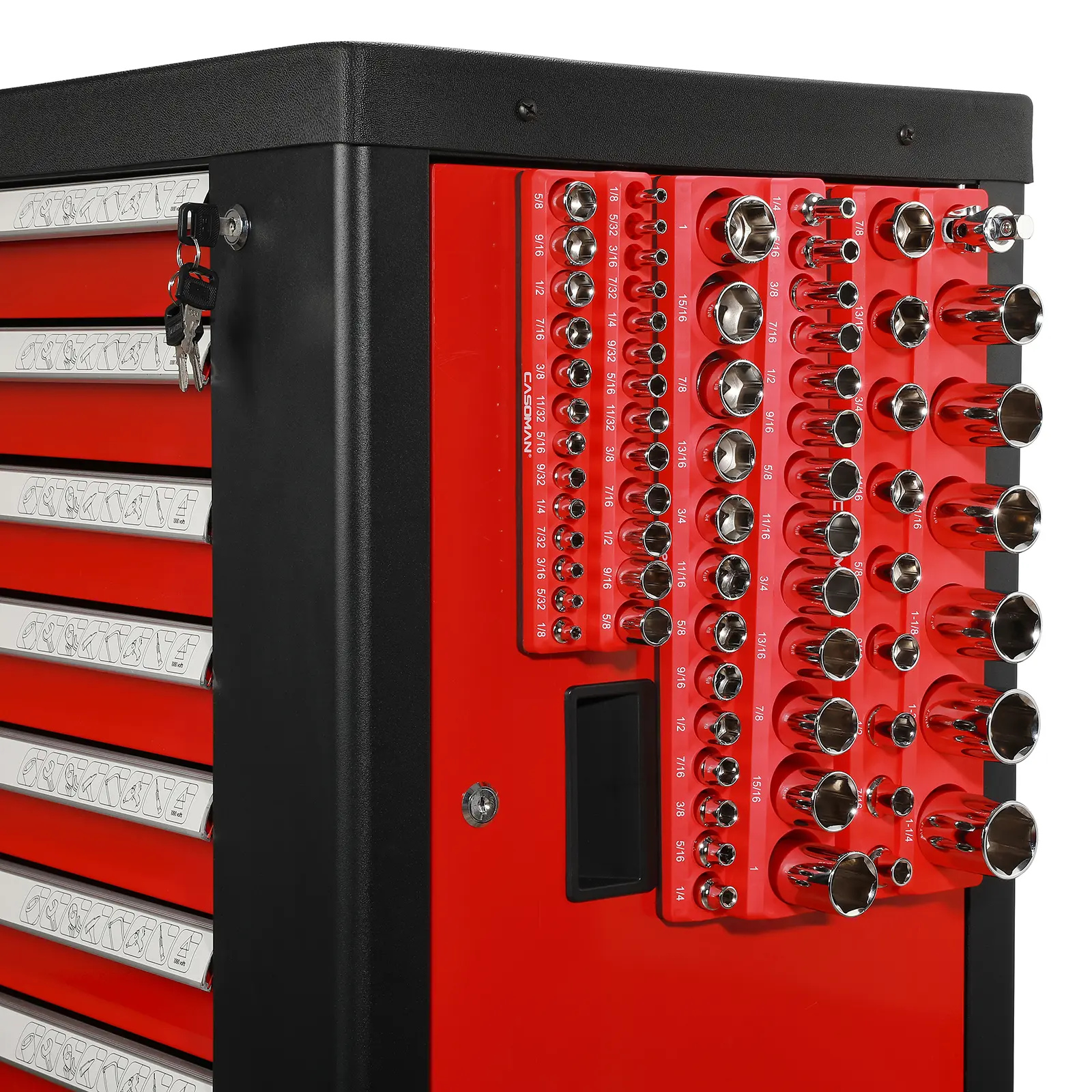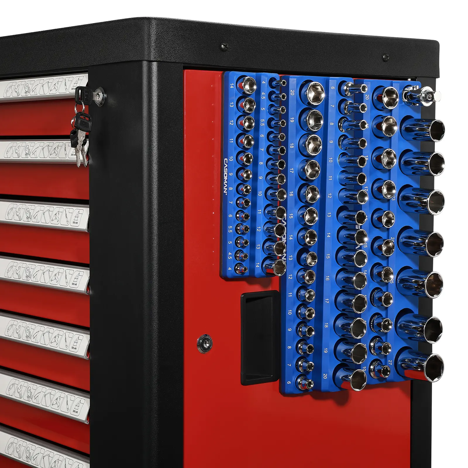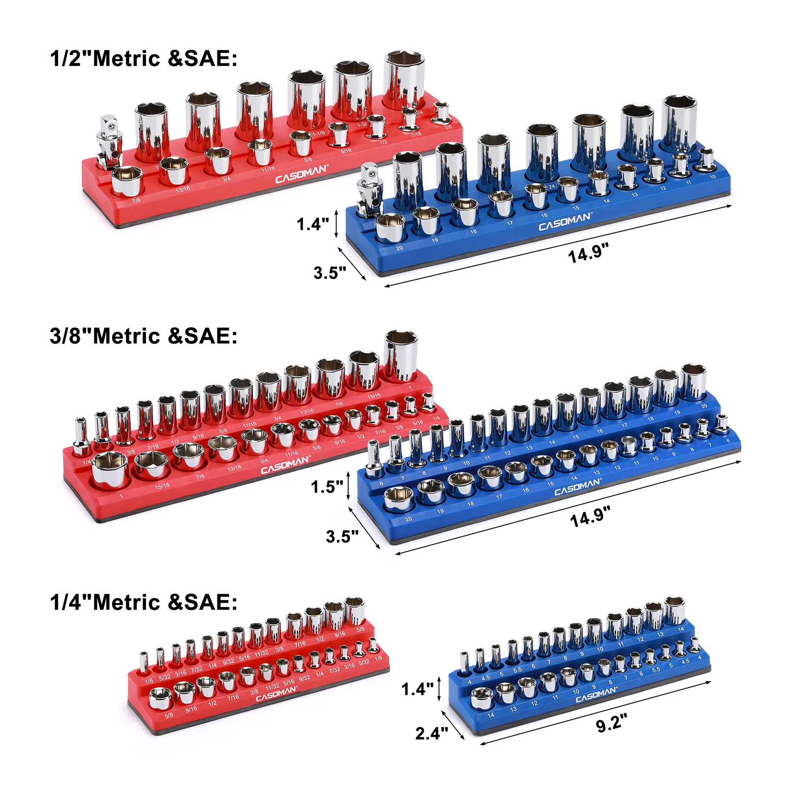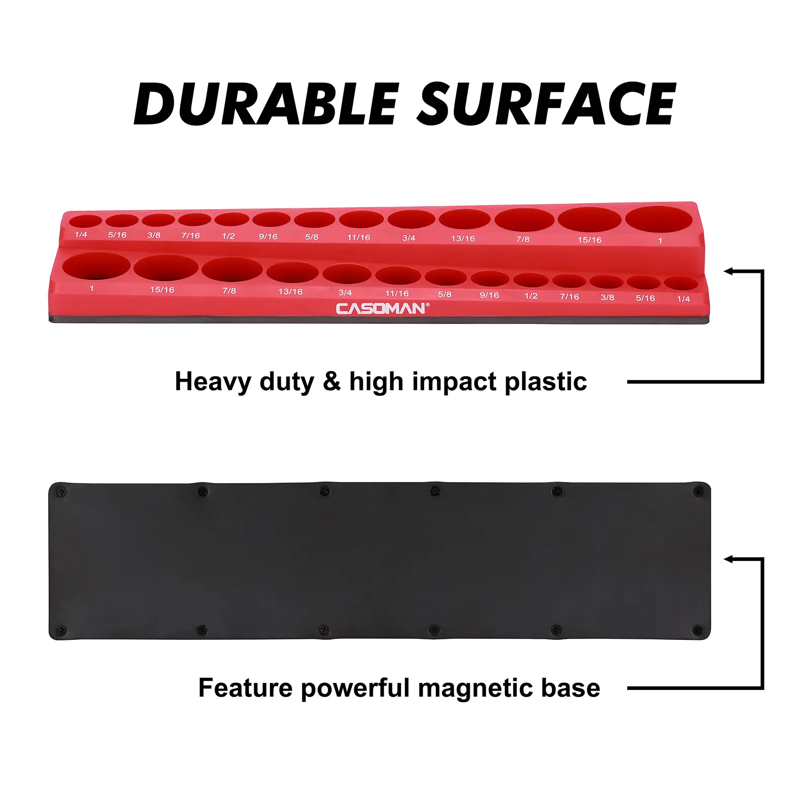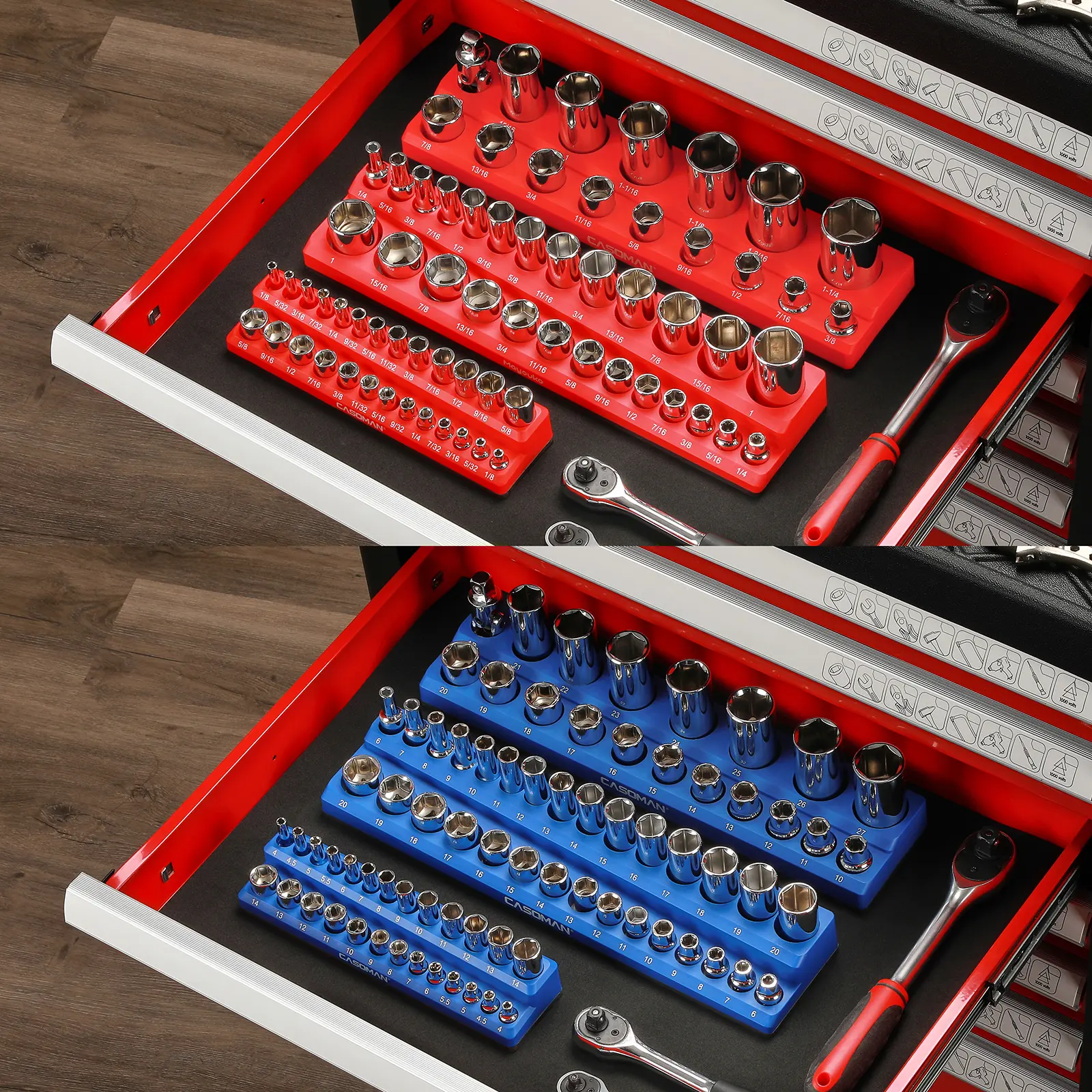 Strong magnets keep sockets in place, even when moving the tray around. Well-organized, sturdy, and a huge time saver in the garage. Once you use it, you won’t go back.