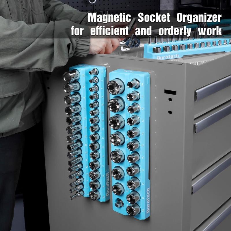 ·Greater Magnetic Force: The magnetic strip of DURATECH socket organizer set has enough magnetic force to keep stable and avoid damage caused by falling. Edge wrapping design protects magnetic strip from breaking off. This socket holder set can be placed in tool box drawer or attached to the side of the tool cart