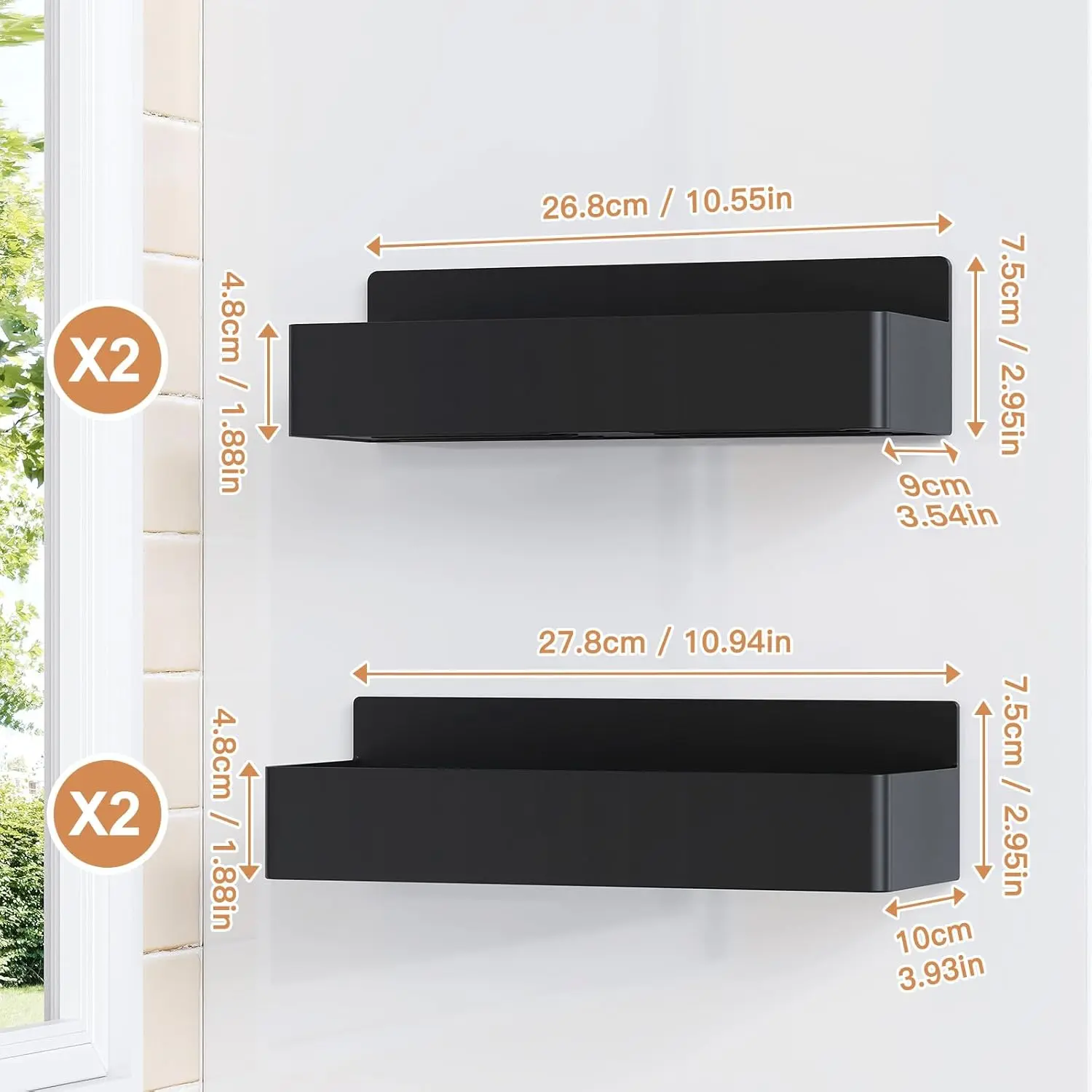 4 Pack Magnetic Spice Rack for Refrigerator, Kitchen Organizer and Storage Shelf, Black