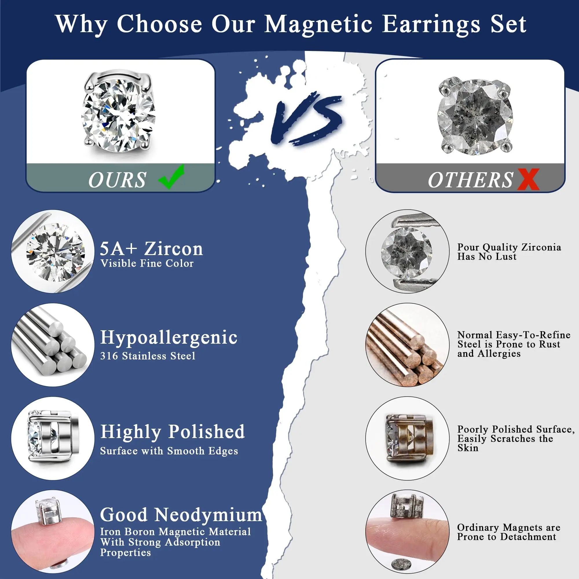 ·Non-piercing Magnetic Stud Earrings, Won't have Painful Piercing Experience, Perfect for Daily Wearing.