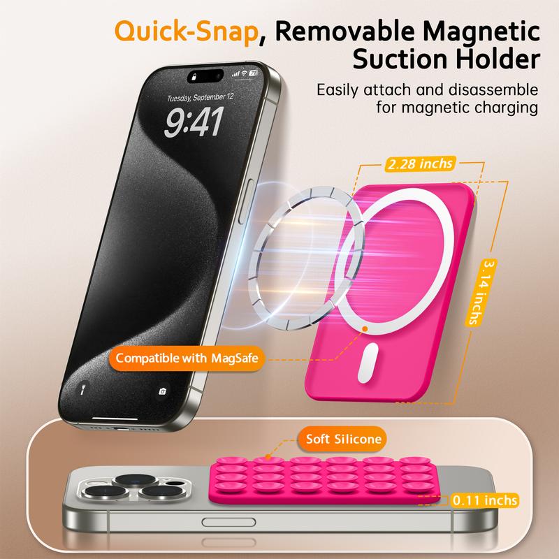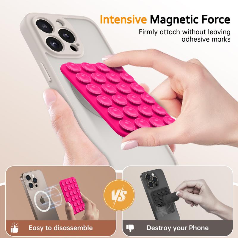 Works well with MagSafe cases and they give you an extra magnet if your case isn’t magnetic. The suction is so strong that it takes a bit of elbow grease to pull it off! Makes me confident that my phone won’t fall and be damaged. Perfect color 🩷