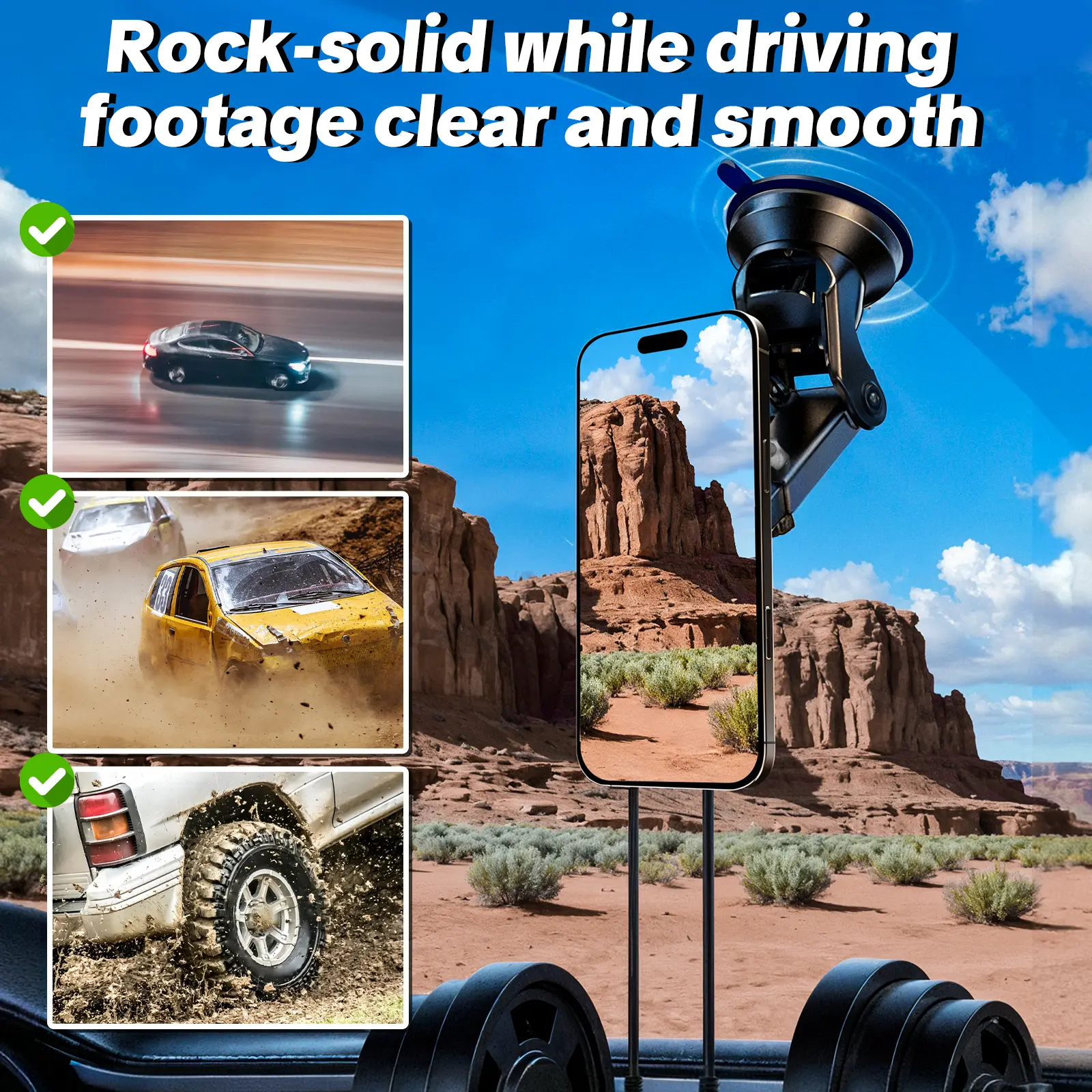 ·Suction cup design simplifies installation. Attach firmly to flat surfaces like the center console or windshield. 🛠️